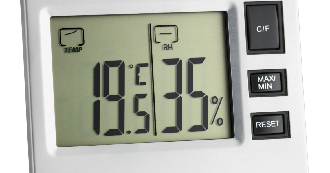 Immer das perfekte Raumklima! Dieses digitale Thermo-Hygrometer von TFA Dostmann misst genau Temperatur und Luftfeuchtigkeit in deinen Räumen. Zeigt dir die Tageshöchst- und Tiefstwerte an - so behältst du immer den Überblick. Mit Max.-Min.-Speicher für längerfristige Beobachtung. Perfekt für ein gesundes Wohnklima und zum Sparen von Heizkosten. Batterie ist bereits enthalten - einfach einschalten und loslegen. Kann aufgehängt oder hingestellt werden. Die Maße von 91 x 18 (75) x 134 mm machen es handlich und unauffällig. Ein echter Klassiker für mehr Wohlbefinden zu Hause!