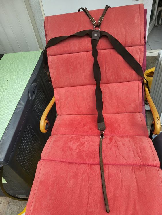 Pferdefreunde, dieses ERIC THOMAS HYBRID Vorderzeug ist der Hammer! Speziell für Warmblüter in der hübschen Havana-Farbe. Das Besondere: Es kombiniert Büffelleder Anilin mit Clarino - das ist schweißresistent und pflegeleicht. Der Kontakt zum Pferd (also Steg und Unterbauch) ist aus dem synthetischen Clarino, damit es länger hält. Das Leder ist schön weich und gepolstert, super bequem für dein Pferd. Die Ziernähte sehen richtig schick aus, und der verstellbare Ratschenring ist abnehmbar. Edelstahl-Schnallen rosten nicht, und das ganze Teil ist einfach langlebig. Perfekt für die Jagd oder andere Reitaktivitäten, wo Style und Komfort zählen. Pflege ist easy: Einfach mit Glycerinseife reinigen, dann mit Lederfett behandeln. Für neue Stücke erstmal etwas Öl drauf. Sieht nicht nur gut aus, sondern funktioniert auch super - dein Pferd wird sich wohlfühlen, und du siehst professionell aus. Ein richtig gutes Stück Arbeit von Eric Thomas, die sich lohnt!