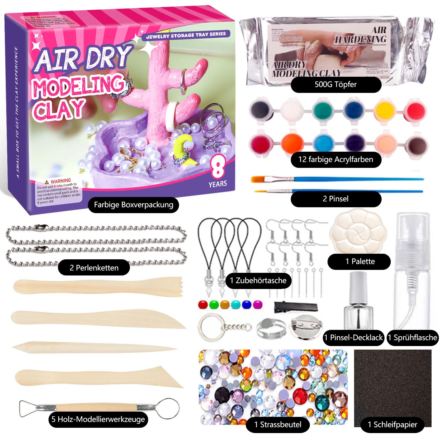 Lust auf kreatives Töpfern ohne Brennofen? Dieses FINGERTIP STORY Set macht's möglich! Mit 500g lufttrocknendem Ton, 12 Acrylfarben, Pinseln, Holzwerkzeugen und allem, was du brauchst, kannst du sofort loslegen. Der weiche Ton ist super einfach zu verarbeiten und trocknet von selbst - perfekt für Anfänger ohne Vorkenntnisse! Ob niedliche Tierfiguren, praktische Untersetzer oder einzigartige Kunstwerke - deiner Fantasie sind keine Grenzen gesetzt. Das Töpfern fördert nicht nur die Kreativität, sondern auch die Hand-Augen-Koordination und motorischen Fähigkeiten. Toll für Kinder und Erwachsene gleichermaßen! Die fertigen Stücke sind wunderbare Geschenke voller persönlicher Note. Einfach auspacken und die Welt des Töpferns entdecken!