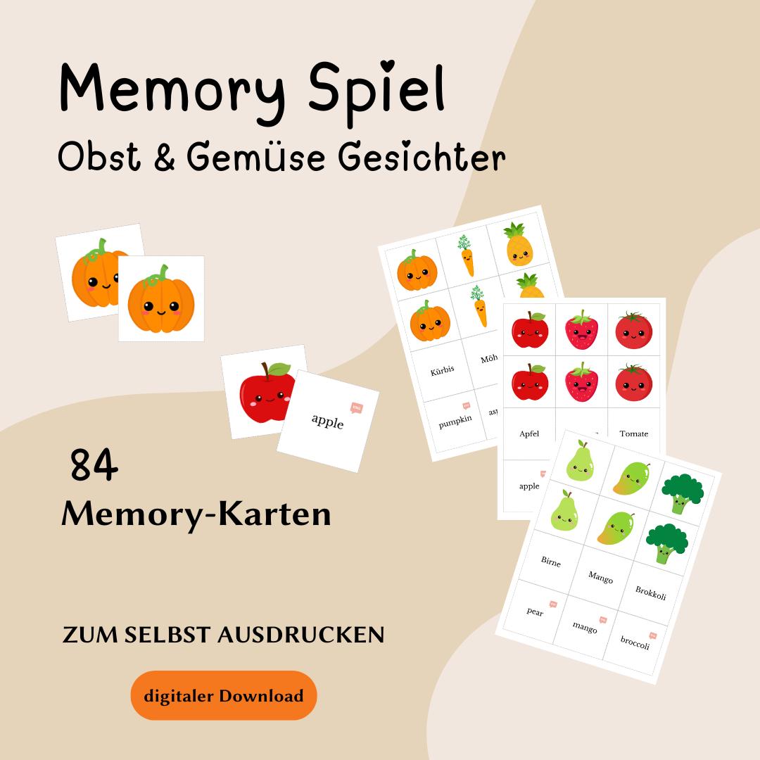 Spielend leicht lernen! Diese bunten Lernkarten bringen Kindern Obst und Gemüse näher und fördern spielerisch das Gedächtnis. \\n\\nIm Set: \\n• Verschiedene Obst- und Gemüse-Motive \\n• Aus stabilem Karton \\n• Kindgerechte Größe \\n• Leuchtende Farben \\n• Für Kinder ab 3 Jahren \\n\\nOb Memory spielen, Sortieren üben oder einfach nur die Namen lernen - mit diesen Karten macht Lernen Spaß! \\n\\nFördert: \\n• Konzentration \\n• Motorik \\n• Sprachfähigkeit \\n• Farberkennung \\n\\Perfekt für Kindergarten, Vorschule oder zu Hause. Bildung die Spaß macht!