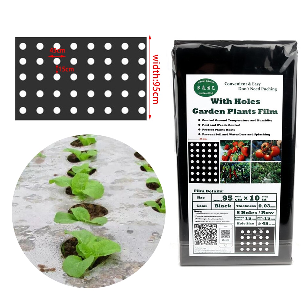 Perfekter Pflanzenschutz für deinen Garten! Diese vier schwarzen PE-Mulchfolien (je 100x95cm) sind deine Geheimwaffe gegen Unkraut und für besseres Pflanzenwachstum. Die perforierte Oberfläche ermöglicht einfache Bewässerung und optimale Belüftung - deine Pflanzen bekommen genau was sie brauchen. Die Folie reguliert die Bodentemperatur, hält die Feuchtigkeit länger im Boden und unterdrückt lästiges Unkrautwachstum. Super für Gemüsebeete, Erdbeeren, Tomaten und alle möglichen Gartenpflanzen. Aus robustem PE-Material, das verschiedenen Wetterbedingungen standhält und lange hält. Einfach auf den vorbereiteten Boden legen, an den Rändern befestigen und an den markierten Stellen die Pflanzen einsetzen. Spart dir viel Zeit beim Jäten und Gießen! Ideal für Hobbygärtner und professionelle Anwender gleichermaßen. Mach deine Gartenarbeit effizienter und deine Ernte ertragreicher - mit dieser praktischen Mulchfolie!