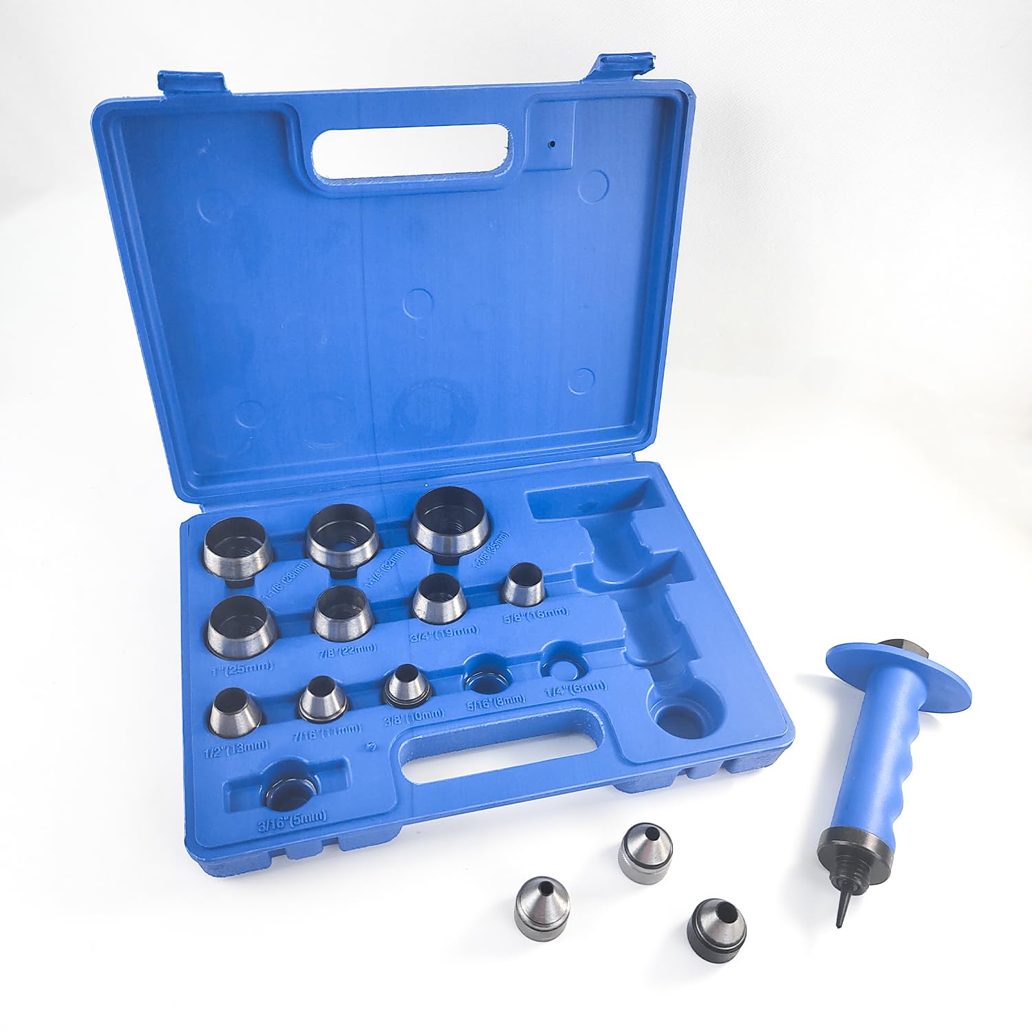 Mensch, dieses TOPWAY Locheisen-Set ist ja mal richtig professionell! 14 Teile mit Stanzen von 5 bis 35 mm - da ist für jede Lochgröße was dabei. Perfekt für Ledergürtel, Uhrenarmbänder, Gummidichtungen - alles, wo man mal ein Loch braucht. Mit Zentrierspitze für genaues Arbeiten. Kommt im praktischen Kunststoff-Etui, damit nichts verloren geht. Super für Heimwerker, Hobby-Schuster oder alle, die gerne mit Leder arbeiten. Einfach das richtige Loch-Eisen nehmen, aufsetzen, hammern - fertig! Macht saubere, präzise Löcher ohne Ausfransen. Ob für den neuen Gürtel oder die Armbanduhr - mit diesem Set bist du bestens ausgerüstet!