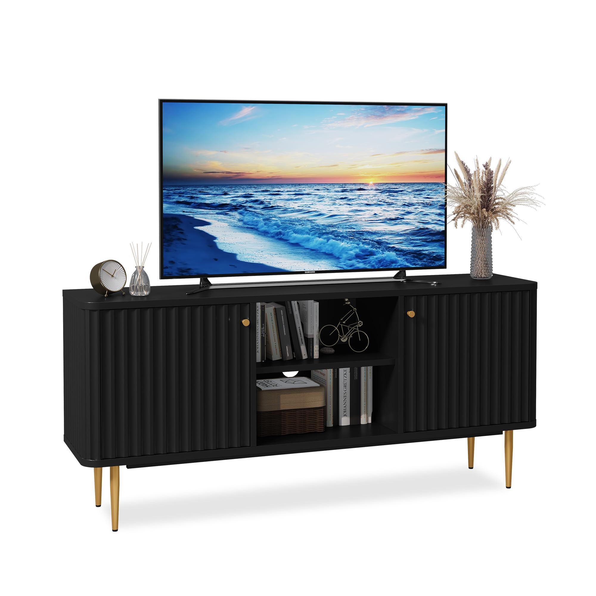 Stylisher TV-Schrank der Ordnung in dein Wohnzimmer bringt! Im schönen Braunton mit retro-elegantem Design. Mit 3 großen Schubladen für Fernbedienungen, Kabel und Zubehör - alles griffbereit aber unsichtbar verstaut. Die verstellbaren Einlegeböden bieten Flexibilität für verschiedene Gerätehöhen. Zwei Kabeldurchführungen sorgen für ordentliche Kabel - kein Chaos mehr! Trägt problemlos Fernseher bis 65 Zoll - stabil und sicher. Zusätzlich 2 geschlossene Fächer und 3 offene Ablageflächen für DVDs, Spielekonsolen und Deko. Das erhabene Vintage-Design an den Türen verleiht dem Schrank besonderen Charme. Passt super in Wohnzimmer, Esszimmer oder Schlafzimmer. Einfacher Aufbau mit bebilderter Anleitung - schnell montiert und sofort einsatzbereit. Macht dein Zuhause gleich viel ordentlicher und gemütlicher!