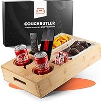 Endlich mal gemütlich auf der Couch sitzen und alles griffbereit haben! Dieses Sofa-Tablett aus Bambus ist 33x23 cm groß und passt auf jede Armlehne von 6-26 cm Breite. Unten ist ein Anti-Rutsch Korkpad - nichts wackelt oder fällt runter. Das absolute Highlight: Der drehbare Handyhalter! 360 Grad drehbar, perfekt für Videos oder Video-Calls. Super für Snacks, Getränke oder die Fernbedienung. Aus nachhaltigem Bambus gefertigt - gut für die Umwelt und sieht auch noch stylisch aus. Ob alleine oder mit Besuch - praktischer geht's kaum. Einfach auflegen und den Komfort genießen!