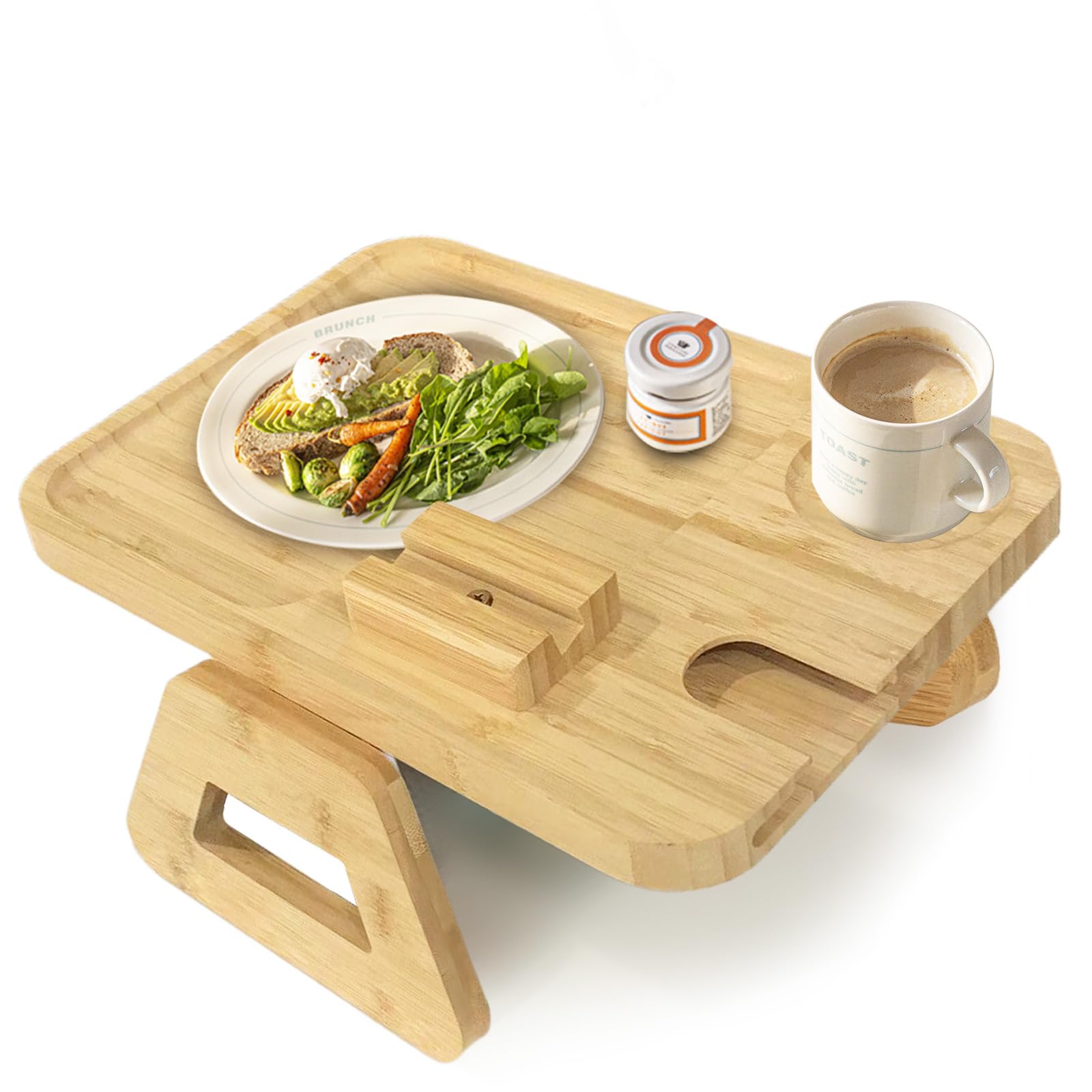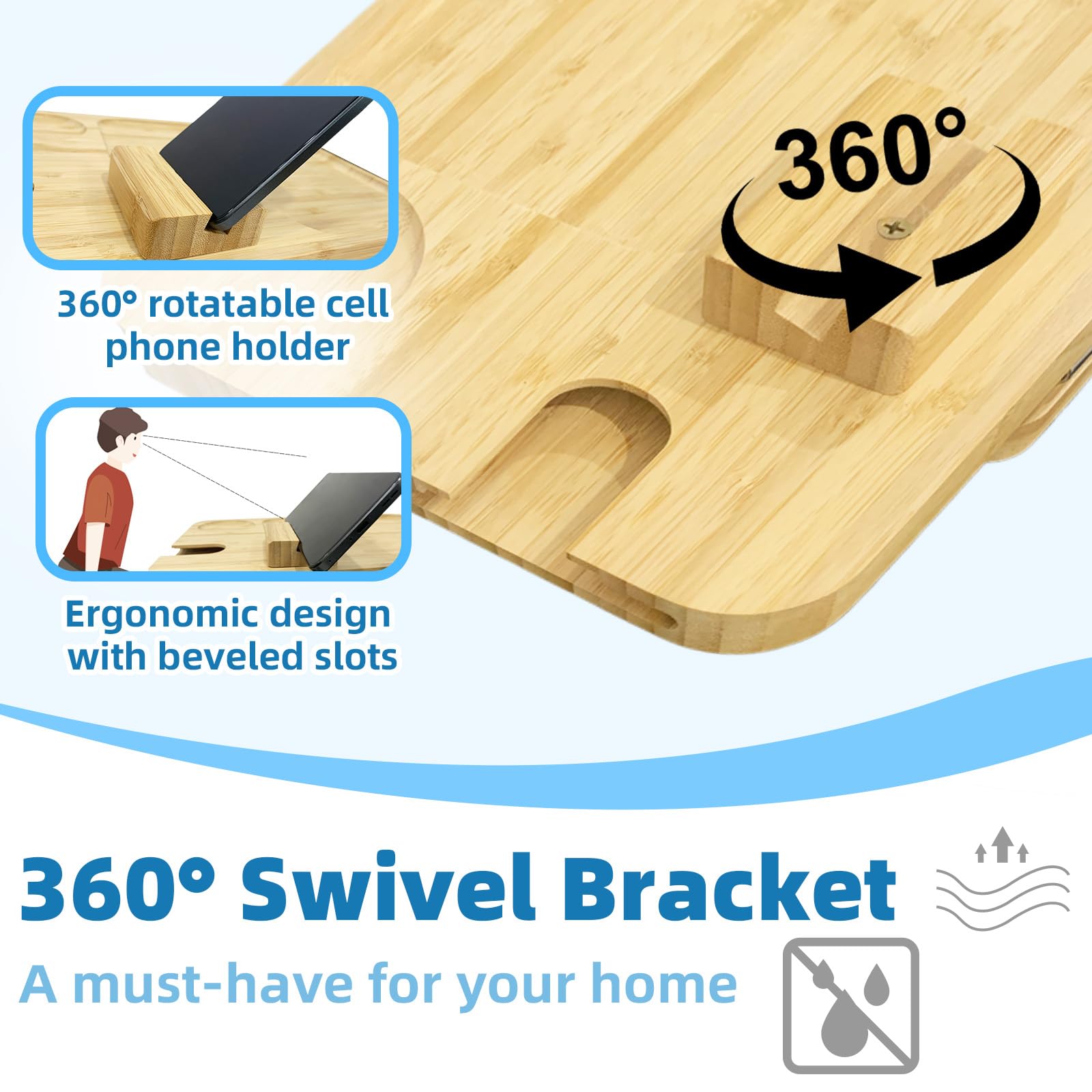 • Sofa Tablett Aus Bambus - Mit Drehbarem Handyhalter & Anti-Rutsch Unterseite