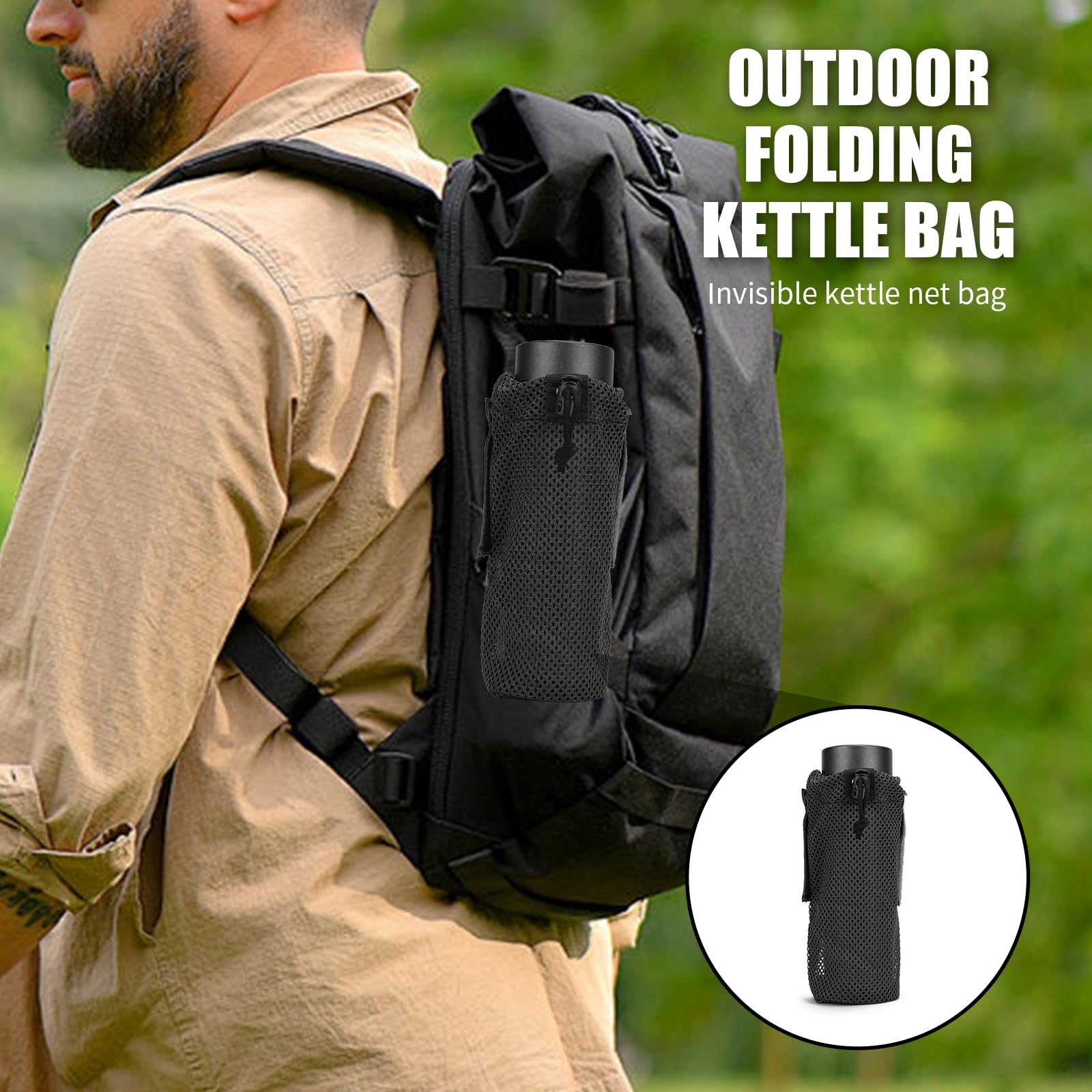 Nie wieder suchen nach deiner Wasserflasche! Dieser praktische Molle-Beutel hält deine Trinkflasche immer griffbereit - ob am Rucksack, Gürtel oder am Zelt. Und wenn er leer ist, faltet er sich auf winzige 5x15 cm zusammen!\n\nSo praktisch ist er:\n• Passt für Flaschen bis 550ml (9cm Durchmesser, 23cm hoch)\n• Robuster Polyester - hält Wind und Wetter stand\n• Molle-System für sicheren Halt am Rucksack\n• Mit Karabiner für flexible Befestigung\n• Extra Platz für Snacks oder kleines Werkzeug\n\nEgal ob Wandern, Camping oder einfach nur unterwegs - dieser Beutel ist dein bester Begleiter für durstige Momente. Einfach einrollen, zusammenklappen und in die Tasche stecken - platzsparender geht's nicht! Endlich Ordnung im Outdoor-Gepäck und immer die Flasche parat, wenn der Durst kommt.