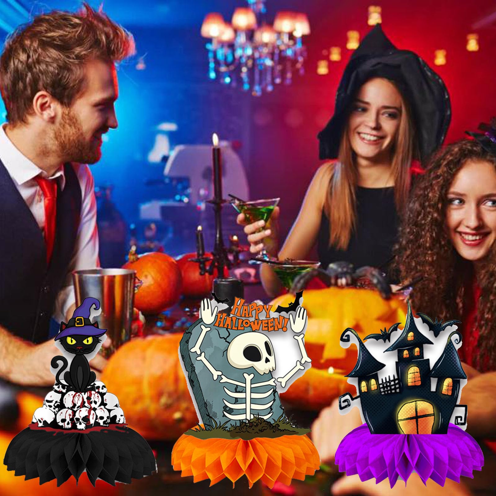Taicols Halloween Waben Mittelstücke 9er Set - 3D Tischdekoration Für Halloween-Party, Bunte Motive
