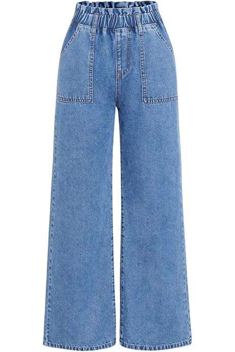 Total angesagt, diese Jeans für Mädchen! Der high-waist Schnitt sitzt super bequem und betont die Taille. Die weiten Beine sind gerade voll im Trend und geben Bewegungsfreiheit ohne Ende. Aus weichem, atmungsaktivem Denim-Stoff, der sich super auf der Haut anfühlt. Mit praktischem Reißverschluss und Knopf-Verschluss - easy an- und auszuziehen. Die passenden Taschen sind nicht nur Deko, sondern auch wirklich nutzbar. Es gibt Größen von 13-16 Jahren mit Taillenumfang von 69-78 cm. Perfekt für Schule, Freizeit, Shopping oder einfach nur zum Chillen. Der lässige Look passt zu Sneakern, Boots oder Sandalen. Deine Tochter wird diese Jeans lieben - versprochen! Einfach mal was Anderes als diese engen Skinny Jeans. Übrigens: Bitte vor dem Kauf die Größentabelle checken, dann passt's bestimmt!