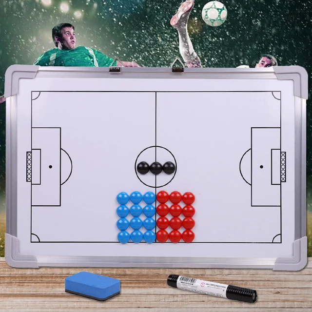 Der Coach in deiner Tasche! Diese professionelle Taktiktafel (75x100 cm) aus beschichtetem Metall ist magnethaftend und mit Whiteboard-Markern beschreibbar. Inklusive: 12 rote und blaue Magnete, 2 gelbe, 1 schwarzer Magnet, Stift und Wischer. Alles sicher verpackt in einer praktischen Tragetasche. Nur 2 kg leicht - perfekt für Training, Spiele oder unterwegs. Trocken abwischbar, immer wieder verwendbar. Ob für Jugendmannschaft oder Profi-Team - damit machst du jede Taktikbesprechung zum Erfolg!
