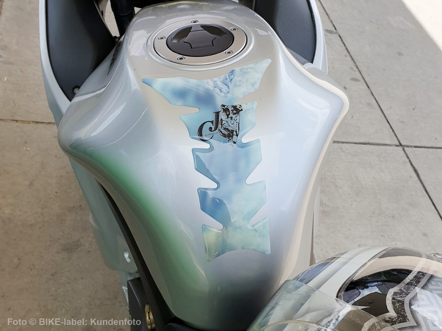 Schütze deinen Motorrad-Tank vor lästigen Kratzern mit diesem hochwertigen 3D Tankpad von BIKE-label! Die Maße von 19x22cm passen perfekt auf die meisten Motorräder - ob Yamaha, Honda, Ducati, Suzuki, Kawasaki, KTM, BMW, Triumph oder Aprilia. Das Besondere: Die dreidimensionale Oberflächenbeschichtung aus Domingharz (ca. 1-1,5mm stark) schützt nicht nur, sondern sieht auch noch richtig edel aus. Das Teil ist absolut UV- und witterungsbeständig - da verblasst nichts, auch nicht bei starker Sonneneinstrahlung. Temperaturbeständig von -40°C bis 120°C? Kein Problem! Selbst in der Waschstraße musst du dir keine Sorgen machen. Und das Beste: Hergestellt in Deutschland, komplett phthalat- und PAK-frei, also absolut ungiftig. Der Kleber ist extrem stark, da hält das Pad bombenfest. Mitgeliefert wird Übertragungstape und eine Verklebeanleitung - also wirklich einfach zu montieren. Einfach ein qualitativ hochwertiges Produkt, das deinen Tank vor Kratzern durch Kleidung oder andere Einflüsse schützt. Sieht gut aus und hält was es verspricht!