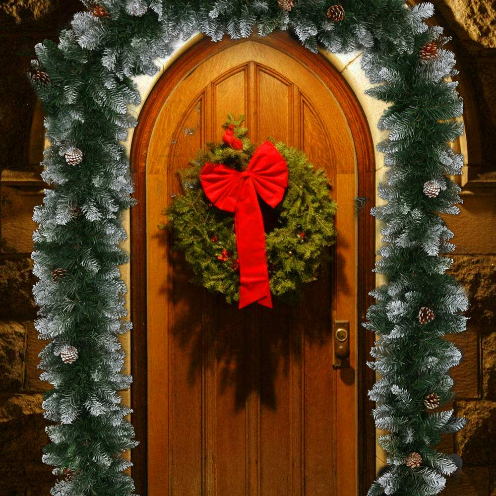 • Weihnachtsgirlande 5x2m Mit Schleifen - Tannengirlande Mit Schnee Für Baum & Deko