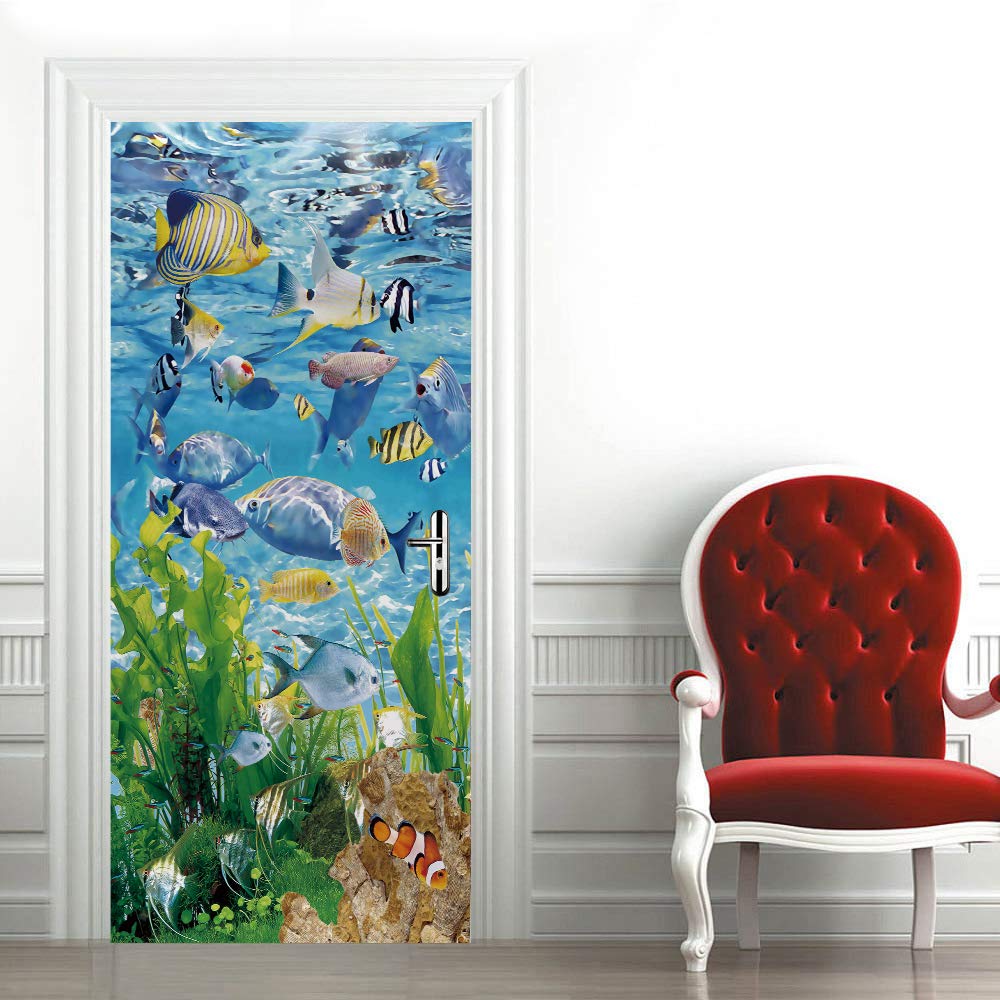 Verwandle deine Tür in ein Kunstwerk - ganz ohne Handwerker! Diese selbstklebende Tür Tapete im skandinavischen Fisch-Design bringt frischen Wind in dein Zuhause. Mit den Maßen 90x200 cm (bestehend aus 2x45x200 cm) passt sie auf die meisten Türen.