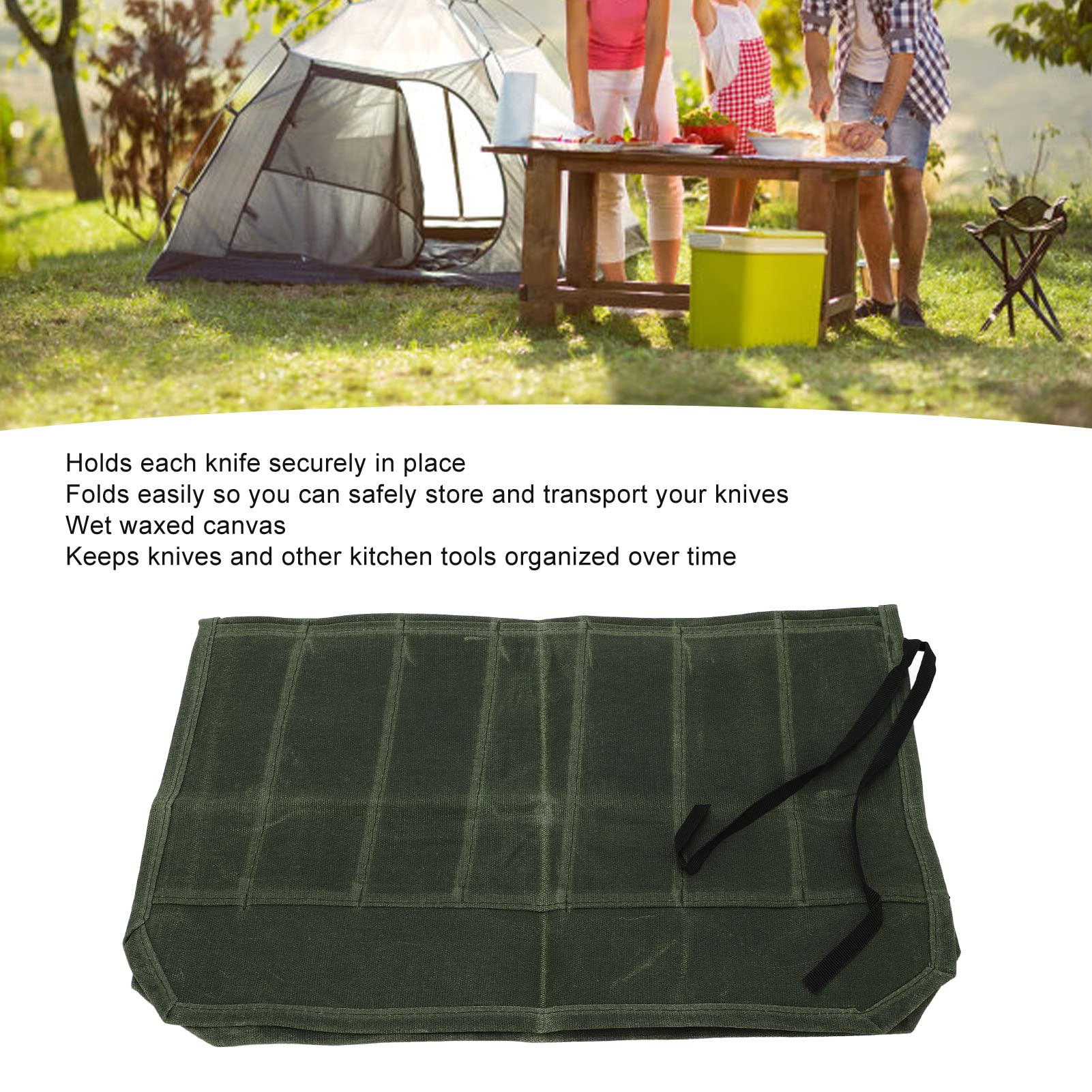 Endlich eine ordentliche Aufbewahrung für deine Messer! Diese Tasche aus robustem Canvas ist genau das Richtige für Camping, Picknick oder einfach für zu Hause. Mit 8 verschiedenen Fächern hast du für jedes Messer den perfekten Platz - von kleinen Gemüsemessern bis zu größeren Kochmessern. Die Fächer nehmen Messer bis 10 cm Länge und 10,5 cm Breite auf. Wenn du sie ausrollst, misst sie 65x45 cm, aufgerollt nur 44x10 cm - super platzsparend also! Das Material ist wasserabweisend, schnittfest und durchstichsicher, deine Messerklingen bleiben also sicher und werden nicht stumpf. Das Zugband sorgt dafür, dass auch beim Transport nichts verrutscht. Perfekt für Küchenmesser, Brotmesser, Buttermesser oder auch Schnitzwerkzeuge. Sieht in Army-Grün auch noch richtig stylisch aus. Einfach aufrollen, zubinden und los geht's zum nächsten Abenteuer!