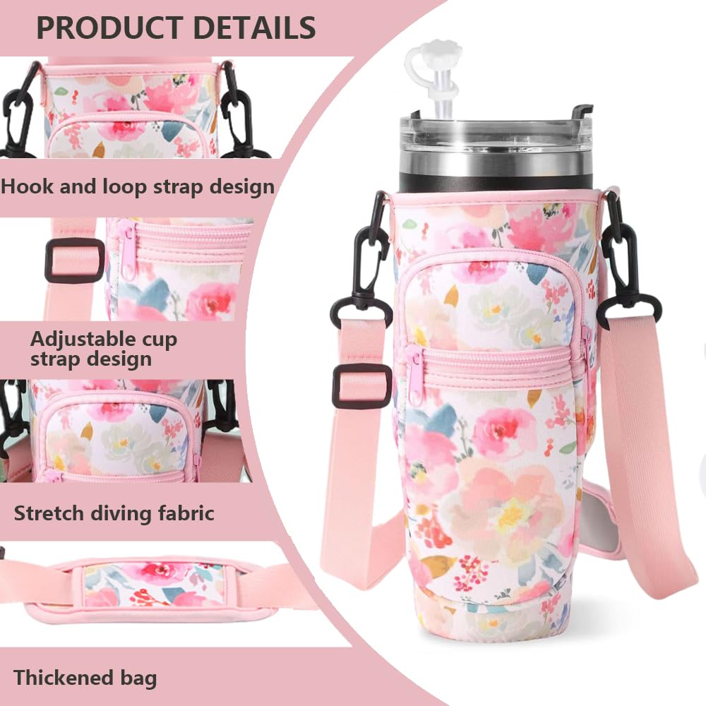 Du bist auch so ein Stanley Cup Fan? Dann brauchst du diese Tasche unbedingt! Die ist speziell für den 40oz Stanley Cup gemacht und hat alles, was du brauchst. Erstmal ist da ein Handyfach, wo du dein Smartphone sicher verstauen kannst. Dazu kommen noch extra Fächer für Karten, Schlüssel oder Lippenstift. Der Trageriemen ist verstellbar - du kannst die Tasche also umhängen, über die Schulter werfen oder einfach in der Hand tragen. Im Lieferumfang sind außerdem zwei Edelstahl-Strohhalme dabei, eine Reinigungsbürste und ein auslaufsicherer Stöpsel. Der verhindert, dass was daneben geht und hält den Strohhalm fest. Das Material ist hochwertiger Stoff, weich und schützt deinen Becher vor Kratzern. Perfekt für unterwegs - ob beim Wandern, Radfahren oder im Fitnessstudio. Einfach praktisch!