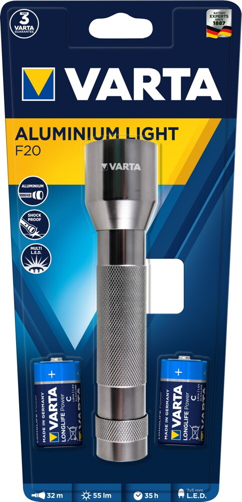 Brauchst du eine zuverlässige Taschenlampe für Camping, Garage oder Notfall? Die VARTA LED Day Light F30 ist dein perfekter Begleiter! Mit 7 starken 5mm LEDs leuchtet sie bis zu 63 Meter weit und hält satte 140 Stunden durch. Das robuste 3-Komponenten-Gehäuse aus Edelstahl, ABS und Gummi übersteht so einiges und ist sogar spritzwassergeschützt. Praktische Trageschlaufe inklusive! Komplett mit 2 VARTA Longlife Power D Batterien - sofort einsatzbereit! Features: 7x 5mm LEDs • Leuchtweite: 63m • Laufzeit: 140h • 58 Lumen • Spritzwassergeschützt • Mit 2 VARTA D-Batterien • Ideal für: Camping, Angeln, Garage, Stromausfall, Outdoor-Aktivitäten