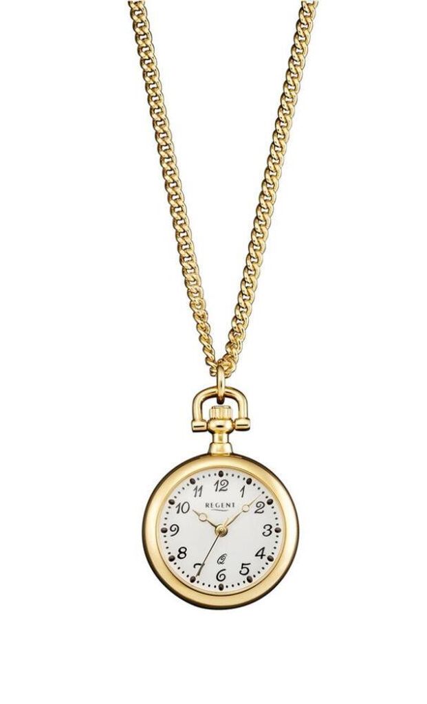 Träumst du von einem nostalgischen Accessoire mit Vintage-Charme? Diese REGENT Taschenuhr ist einfach wunderschön! Mit der 70cm langen Kette kannst du sie elegant um den Hals tragen oder an der Tasche befestigen. Der Klappdeckel schützt das zarte weiße Zifferblatt - so bleibt die Uhr immer makellos.