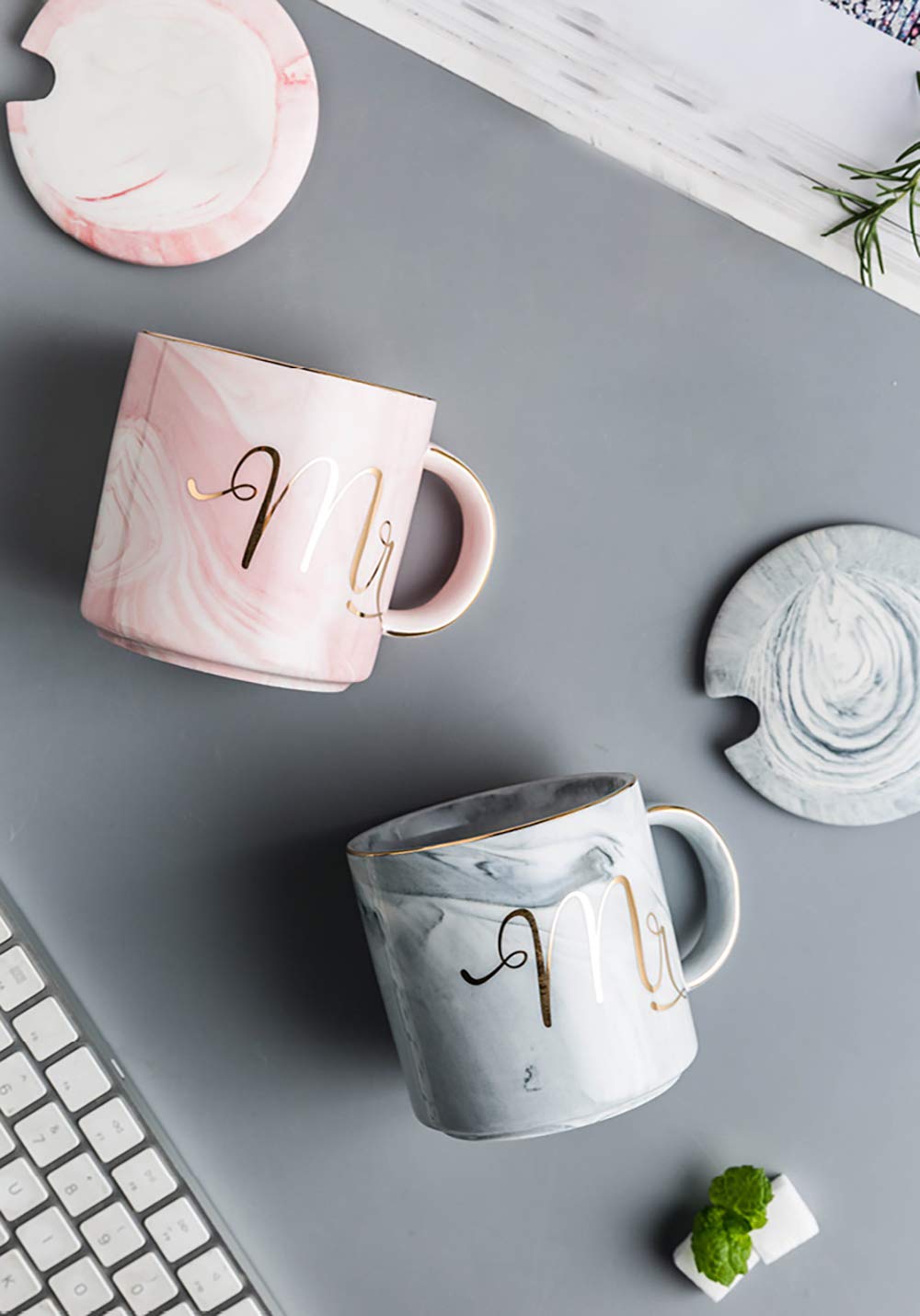 Wow, dieses Mr & Mrs Tassen Set ist einfach der Hammer für verliebte Paare! Die beiden 400ml Kaffeetassen im trendigen Marmor-Design sehen total edel aus mit den goldenen Akzenten am Rand und am Henkel. Perfekt für den morgendlichen Kaffee zusammen oder für gemütliche Abende zu zweit. Hergestellt aus hochwertiger Keramik, fühlen sie sich richtig wertig an. Das Set kommt komplett mit zwei Deckeln, zwei Löffeln und einem Seidenband - ideal zum Verschenken! Ob zur Hochzeit, Verlobung, zum Valentinstag oder einfach so: Dieses Tassen-Paar zeigt, dass ihr zusammengehört. Die Tassen sind übrigens 9cm hoch und 13cm breit, also schön groß für deinen Lieblingskaffee oder Tee. Die glatte Oberfläche macht das Reinigen super einfach. Mit der hübschen Geschenkbox kommt das Set richtig edel daher - einfach das Band drum und schon ist das perfekte Geschenk für deinen Liebsten oder deine Liebste fertig! Egal ob für Frischverliebte oder langjährige Paare, diese Tassen sind ein tolles Andenken an eure Liebe. Das marmorierte Design ist jedes Mal einzigartig, genau wie eure Beziehung!