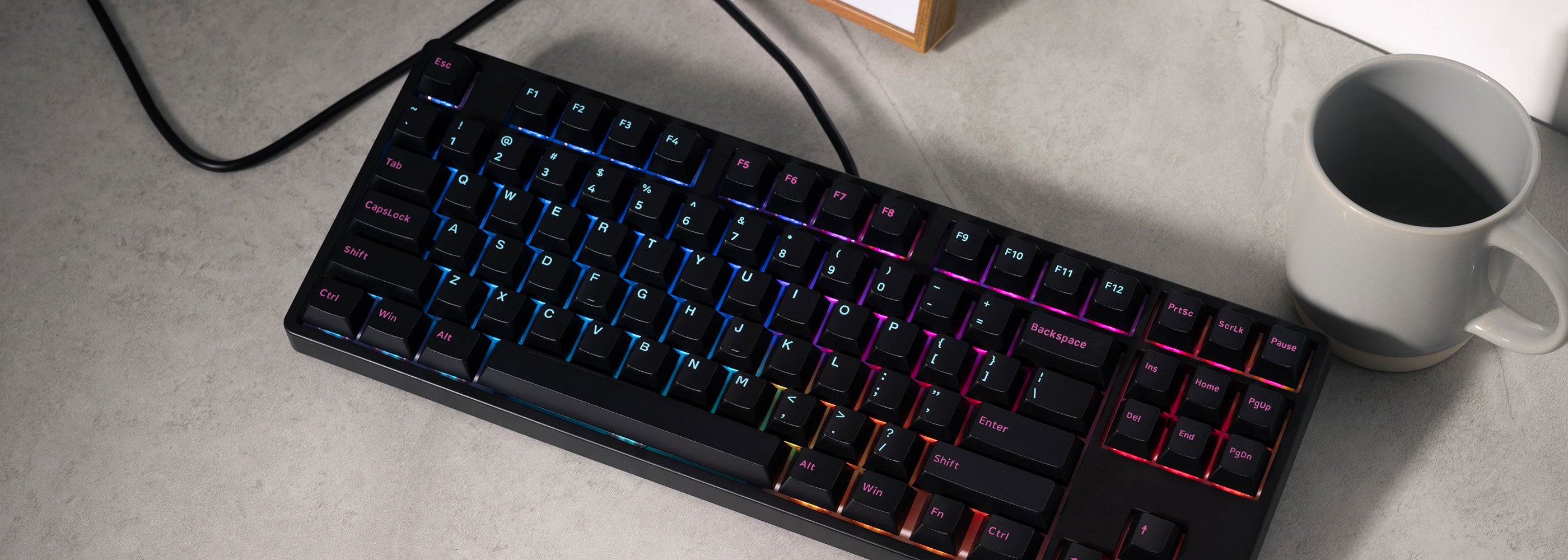 Das ultimative Gaming-Keyboard für echte Enthusiasten! Die Akko 5087S im Midnight-Design mit schwarzer Basis und dekorativen roten/blauen Tasten. Mit 87 Tasten im kompakten TKL-Format spart sie Platz auf deinem Schreibtisch. Das Besondere: Sie unterstützt VIA/QMK Programmierung - du kannst Makros erstellen und Tastenbelegungen ändern, ohne die Firmware zu flashen. Hot-Swap-fähig mit 5-Pin PCB, unterstützt 3-polige und 5-polige mechanische Schalter von Akko, Kaih, Gateron und mehr. Die PBT Double-Shot Keycaps sind extrem langlebig und die Beschriftungen verblassen nicht. Mit RGB-Beleuchtung, N-Key Rollover und verstellbarem Ständer (5°, 7,5°, 11°). Type-C-Anschluss mit abnehmbarem Kabel - perfekt für Gaming und Arbeit!