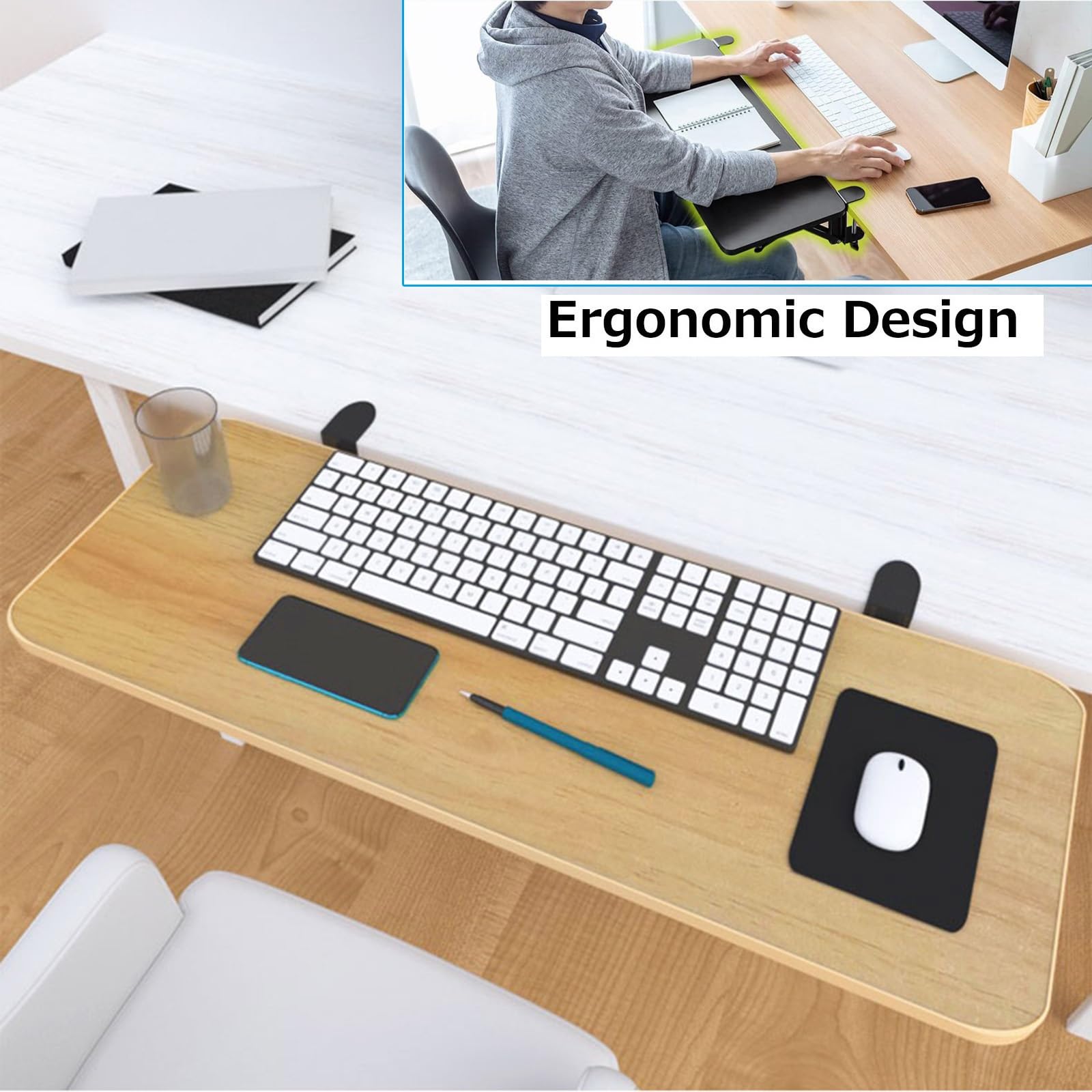 Endlich schmerzfrei arbeiten! Diese Tastaturablage mit Armauflage ist der absolute Game-Changer für jeden, der viel am Schreibtisch sitzt. Verfügbar in 65 oder 80 cm Breite und 25 cm Tiefe - und das in vier schönen Farben: Teak, Weiß, Schwarz und Walnuss. Das 90-Grad-Faltdesign spart super viel Platz, wenn du sie mal nicht brauchst. Einfach an der Tischkante befestigen - ohne Bohren oder Kleben! Trägt bis zu 25 kg und entlastet deine Arme und Handgelenke spürbar. Perfekt fürs Homeoffice, aber auch in der Küche oder als kleine Werkbank nutzbar. Die Stahlhalterungen sind mega stabil und die Oberfläche lässt sich easy reinigen. Ob für Laptop, Tastatur oder als Ablage für Drucker - diese Verlängerung macht jeden Schreibtisch sofort komfortabler. Deine Arme werden's dir danken!