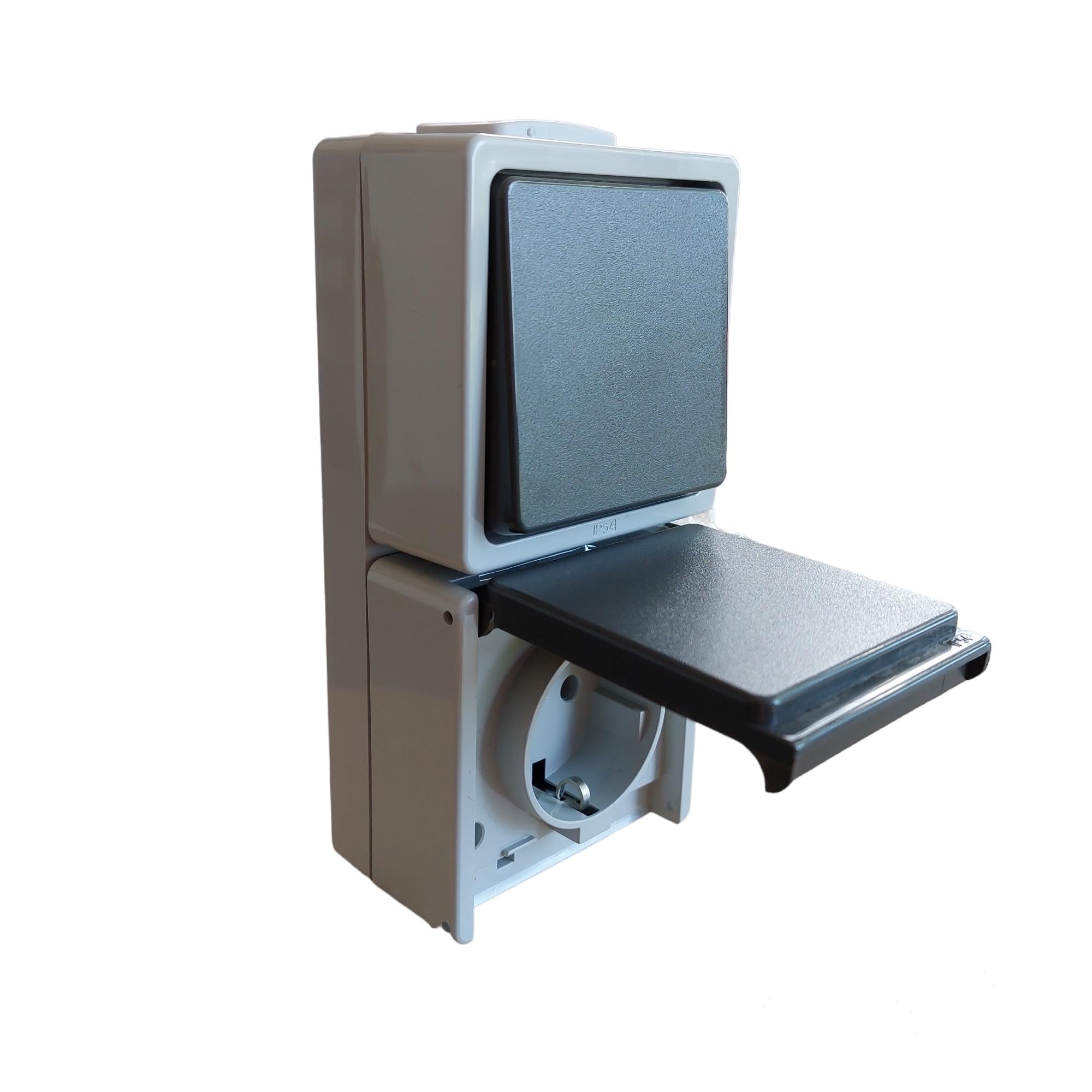 • N&L Aufputz Taster IP54 - Spritzwassergeschützter Schalter Grau