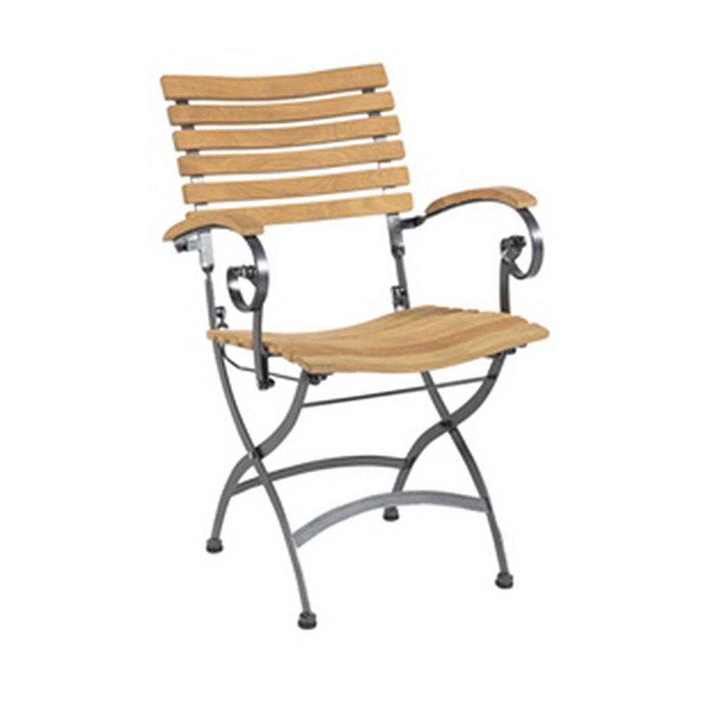 Hey, suchst du einen gemütlichen Klappsessel für deine Terrasse oder den Garten? Der BEST Cavalese ist genau das Richtige für alle, die es bequem und stylisch mögen! Das Gestell ist komplett aus Aluminium - super leicht und absolut witterungsbeständig. Kein Rost, keine Probleme mit Regen oder Sonne!\n\nDie Armlehnen sind aus echtem Teak-Holz gefertigt, das nicht nur edel aussieht, sondern auch super langlebig ist. Die Bespannung aus Ergotex-Gewebe ist atmungsaktiv und reißfest - perfekt für warme Sommertage.\n\nWas ich besonders praktisch finde: Die Rückenlehne ist mehrfach verstellbar! So findest du immer die perfekte Sitzposition. Und wenn du mal wenig Platz hast: Die Sessel sind stapelbar - super praktisch für die Aufbewahrung im Winter.\n\nMaße für alle, die's genau wissen wollen:\n- Gesamt: 62x67x110 cm (BxTxH)\n- Sitzfläche: 48x45 cm\n- Sitzhöhe: 43 cm\n- Armlehnenhöhe: 66,5 cm\n- Rückenlehnenhöhe: 72 cm\n\nEgal ob für die Terrasse, den Garten oder den Balkon - dieser Klappsessel macht einfach eine gute Figur und bietet dir maximalen Komfort. Perfekt für gemütliche Stunden mit einem guten Buch oder für gesellige Abende mit Freunden!