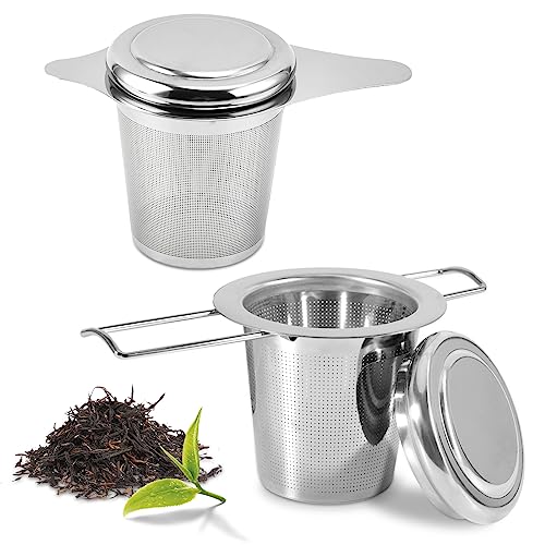 Diese beiden Teesiebe aus Edelstahl sind einfach perfekt für alle Teeliebhaber! Mit ihrem feinmaschigen Netz sorgen sie dafür, dass keine Teeblätter in deine Tasse gelangen. Der lange Griff ist super praktisch - du kannst das Sieb easy öffnen und schließen, sogar mit einer Hand. Mit 5cm Durchmesser passt es in fast jede Tasse und Teekanne. Aus 304 Edelstahl gefertigt, also geschmacksneutral, spülmaschinenfest und total langlebig. Nicht nur für Tee super, sondern auch für Kräuter, Gewürze oder Kakao. Ob im Büro, zu Hause oder unterwegs - damit bereitest du dir immer schnell deinen Lieblingstee zu. Einfach Tee rein, in die Tasse hängen, heißes Wasser drauf und genießen!
