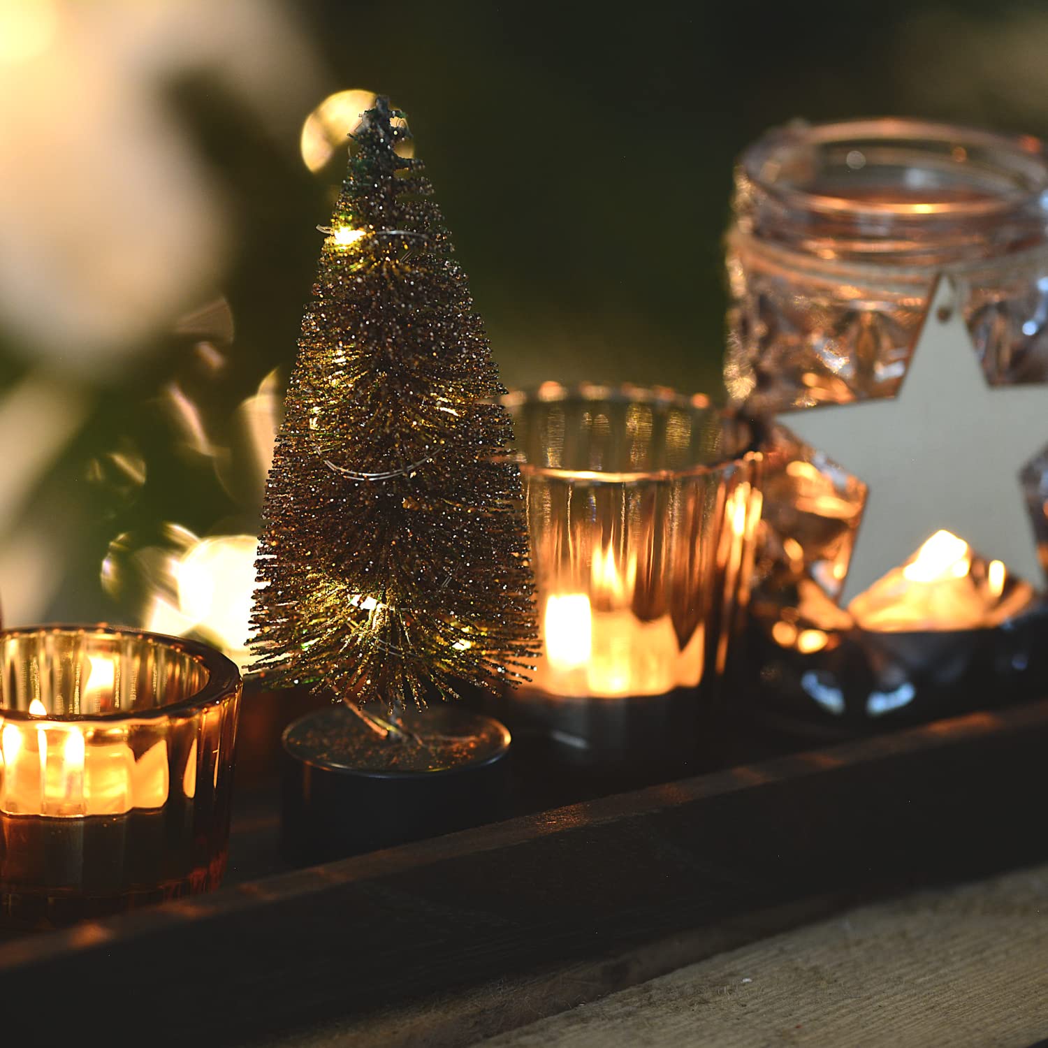 Jedes Glas ist 3,45cm hoch und 4,5cm breit - perfekt für normale Teelichter oder LED-Kerzen! Das gerippte Glas wirft wunderschöne Lichtreflexe, und die handgemachten Kränze sehen aus wie frisch aus dem Wald gepflückt!