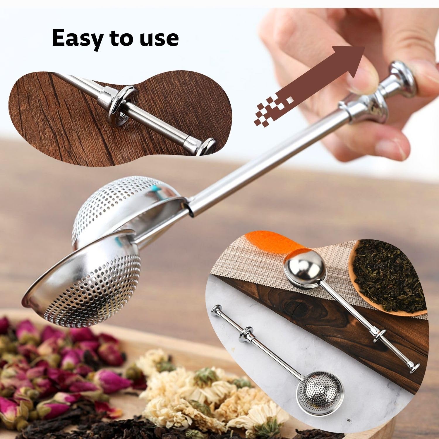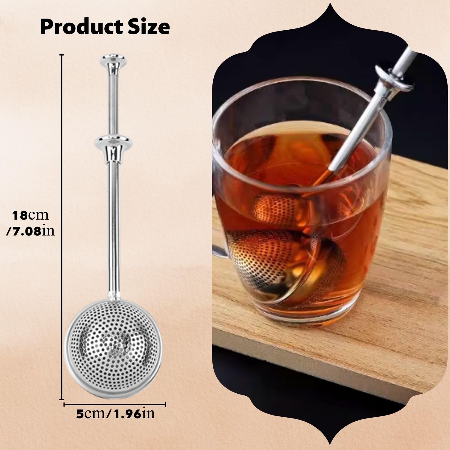 Boah, diese Teezange ist der Hammer! Aus 304 Edelstahl - also absolut lebensmittelecht, rostfrei und mega langlebig. Der Teleskopgriff ist genial: 18cm lang, schützt vor Verbrennungen und du kannst damit super in tiefen Tassen rühren. Einfach drücken, Teeblätter rein, loslassen - fertig! Und das Beste: Funktioniert auch als Mehlsieb für Puderzucker, Kakao oder Matcha. Spülmaschinenfest und total easy zu reinigen. Im 2er-Set - ideal für dich und zum Verschenken. Endlich perfekter Teegenuss!