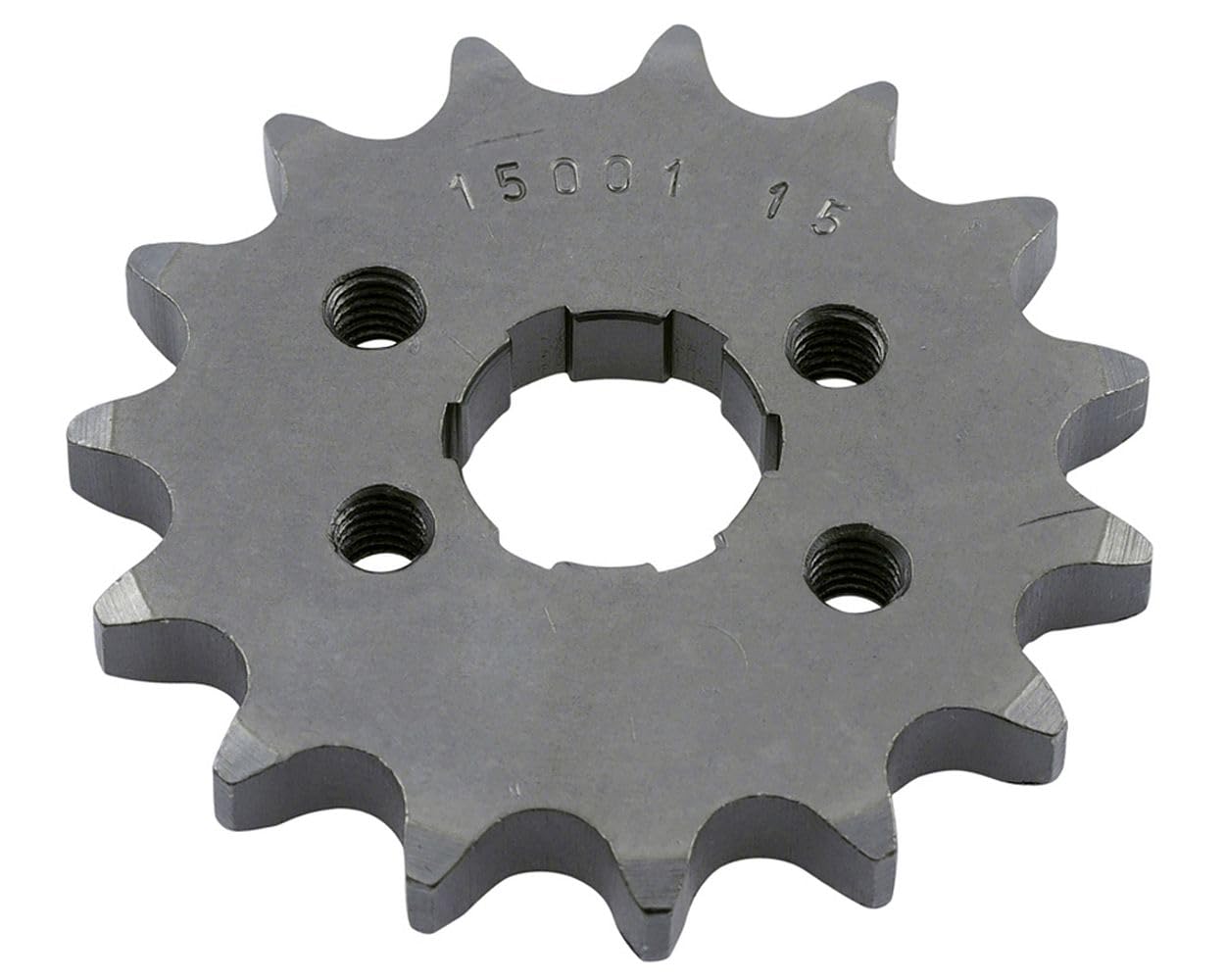 Braucht deine Daelim ein neues Ritzel? Dieses 15-Zähne Ritzel mit 428er Teilung ist genau das Richtige! Aus robustem Stahl gefertigt, hält es ordentlich was aus. Passt für verschiedene Daelim Modelle: VT 125 VT125F (98-00), VS 125 VS125F (97-99), VC 125 S (95-97), VJ 125 Roadwin (04-07), VL 125 VL125F (00-05). Einfach das alte Ritzel abmontieren und dieses hier drauf - schon läuft deine Maschine wieder smooth! Besonders praktisch für alle, die ihr Motorrad selbst warten wollen. Kein teurer Werkstattbesuch nötig! Das Ritzel sorgt für den optimalen Antrieb und macht jede Fahrt zum Vergnügen. Ein qualitativ hochwertiges Ersatzteil, das sich wirklich lohnt. Einfach bestellen und die nächste Tour kann kommen!