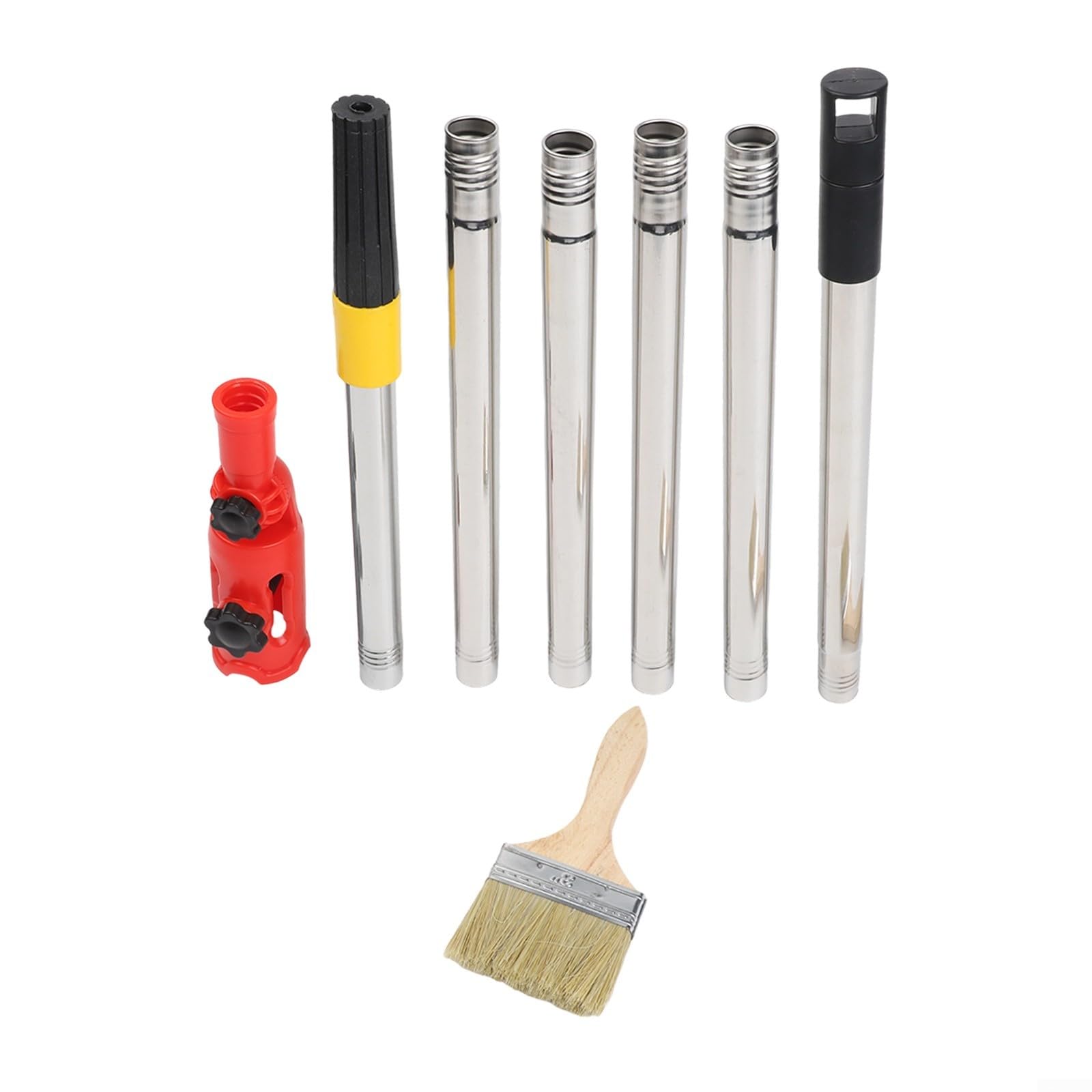 Nie wieder auf wackelige Leitern steigen! Diese Teleskop-Stange mit 1,7 m Reichweite macht das Streichen von hohen Decken und Wänden zum absoluten Kinderspiel. Das geniale Multi-Winkel-System lässt sich in jede Position bringen - so erreichst du auch die hintersten Ecken ohne Verrenkungen. Sechs ausziehbare Segmente mit Schraubgewinde für maximalen Halt. Im Set dabei: Winkelhalter, Bürste und alle Stangenteile. Perfekt nicht nur zum Streichen, sondern auch zum Fensterputzen und Staubwischen. Die rote Farbe sieht dabei noch richtig professionell aus. Aus robustem Kunststoff und Edelstahl - made to last! Ob für DIY-Heimwerker oder Profi-Maler - dieses Tool spart dir Zeit, Nerven und einen schmerzenden Rücken. Einfach ausziehen, einklipsen und loslegen!