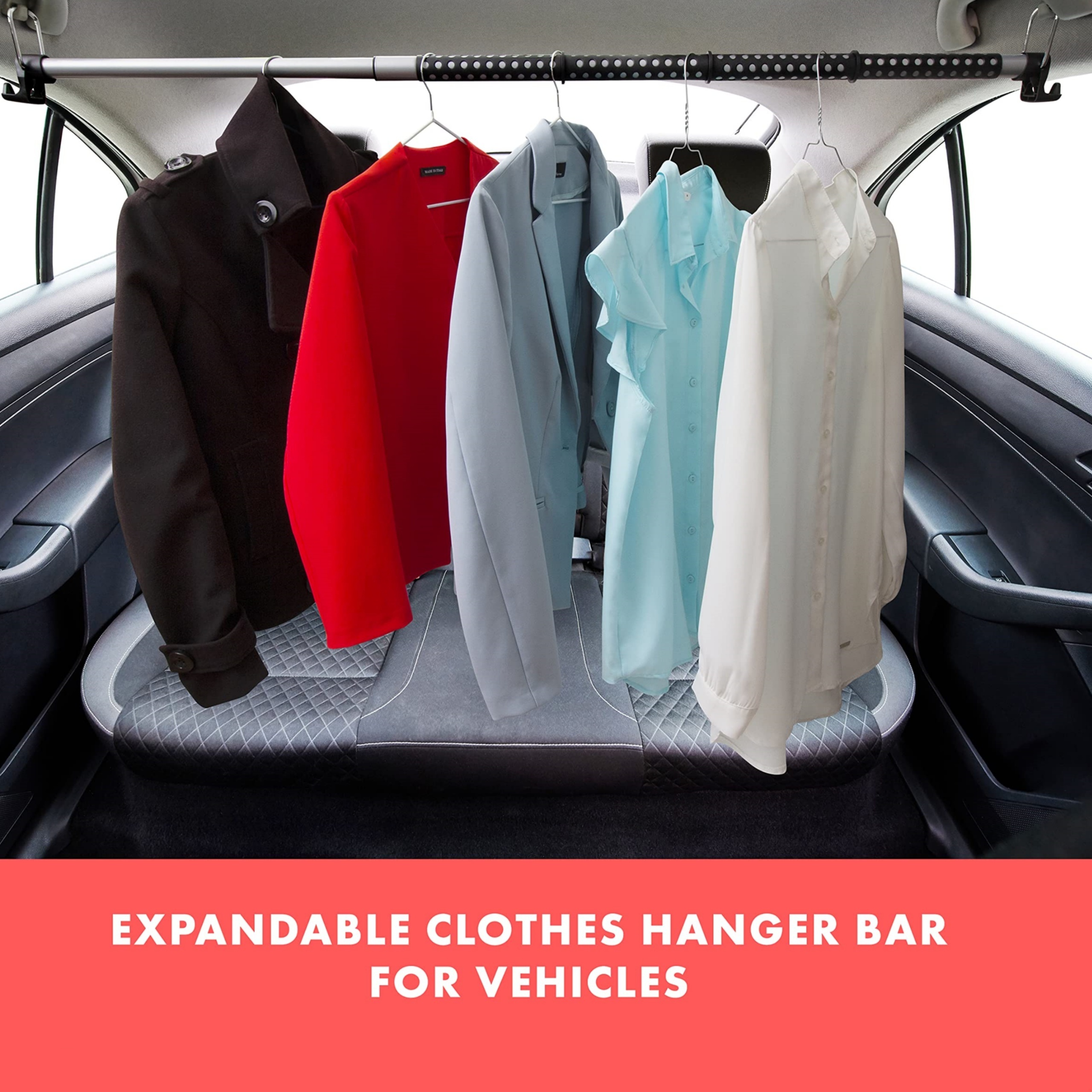 Stell dir vor: Du fährst zum Meeting und dein Anzug kommt ohne Knitterfalten an! Mit dieser teleskopierenden Kleiderstange fürs Auto klappt's. Die Stange lässt sich von 89,5cm auf 151cm ausziehen und passt so in fast jedes Auto - ob PKW, SUV oder Van. Aus robustem Edelstahl gebaut, hält sie bis zu 60kg aus. Besonders clever: Die Gummigriffe und Trennringe sorgen dafür, dass deine Kleidung auch bei holprigen Strecken nicht runterfällt oder verrutscht. Einfach an den vorhandenen Haltegriffen oder Kleiderhaken im Auto befestigen - Montage in Sekunden. Perfekt für Geschäftsleute, die immer gut angezogen sein müssen, oder für Familienurlaube, damit die Kleidung ordentlich bleibt. Praktisch ist auch, dass du so mehrere Outfits platzsparend unterbringen kannst. Mach deine Fahrten komfortabler und sorg dafür, dass deine Kleidung makellos am Ziel ankommt - ob Business-Trip, Hochzeit oder Urlaub.