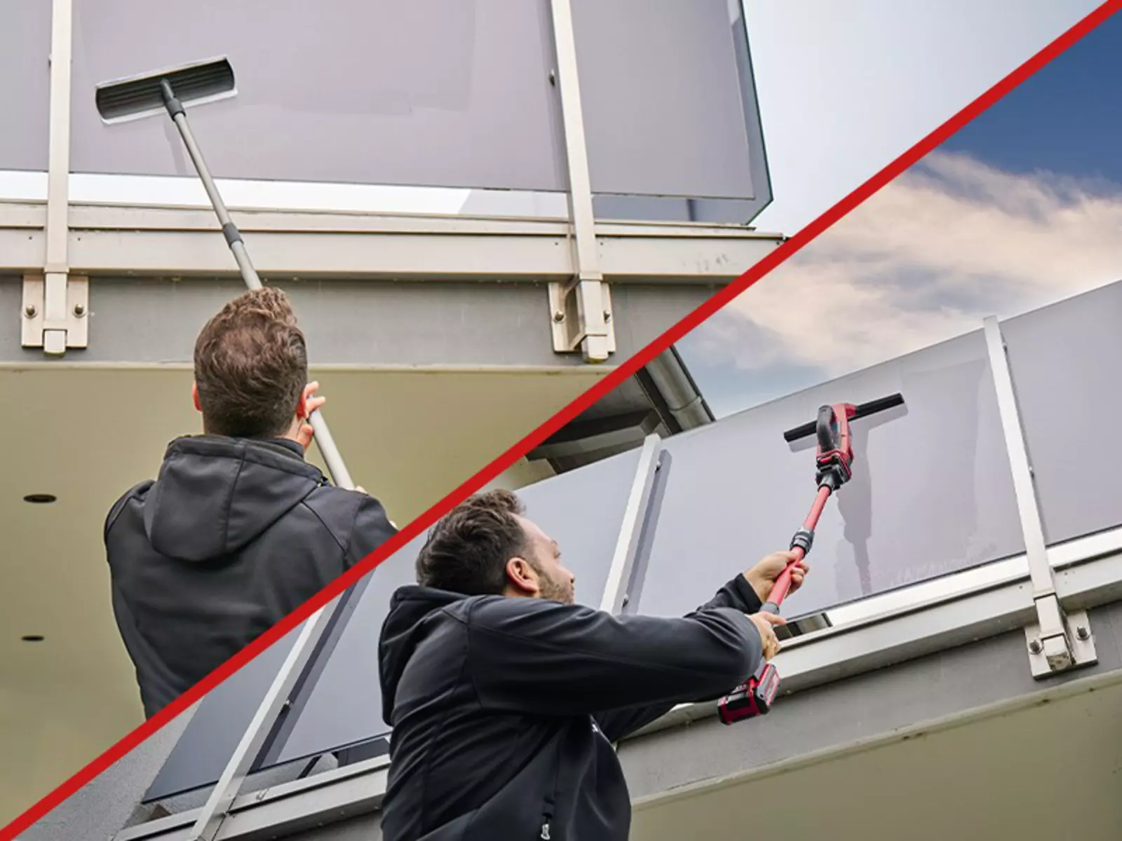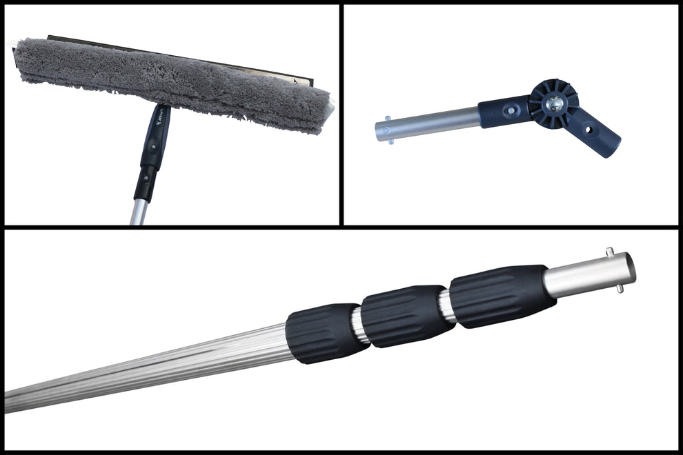 Hey, hast du auch diese hohen Fenster, die du kaum erreichst? Mit dem Swivel-Loc Teleskopstiel wird's easy! Den kannst du bis auf 1,26 Meter ausziehen – perfekt für alles, was sonst zu hoch ist. Der Griff liegt super in der Hand, auch wenn du länger schrubbst. Und das Beste: Der Sicherungsbolzen sorgt dafür, dass nichts verrutscht oder dreht. Einfach einstellen, fixieren und loslegen! Passt übrigens ideal zum Swivel-Loc Fensterreiniger-Set. Macht die Reinigung von großen Flächen zum Kinderspiel. Details: Länge bis 126 cm, Farbe blau/silber, Material Kunststoff. Einfach praktisch!