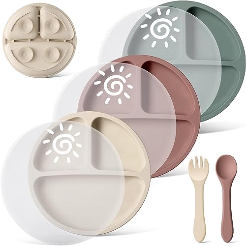• NesriToy Silikon Baby Teller Mit Saugnapf - 2 Stück Geteilte Teller Mit Deckel BPA-frei