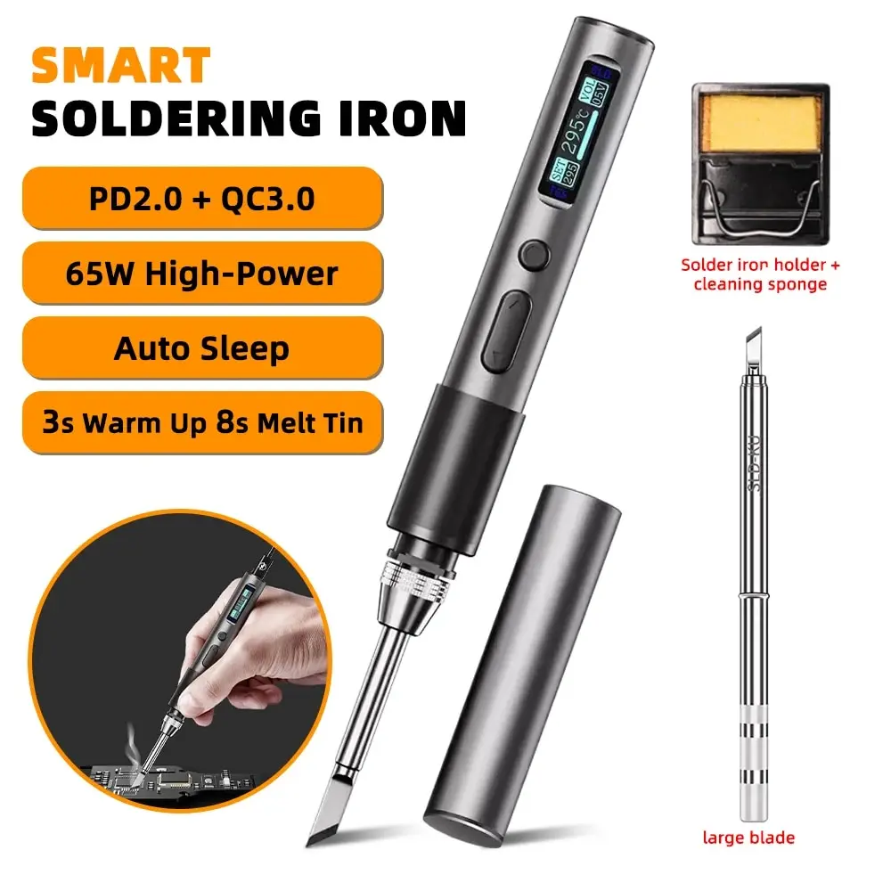 • Risegun USB Lötkolben 65W - Temperatur Einstellbar 180-450°C, Tragbar Für Elektroarbeiten