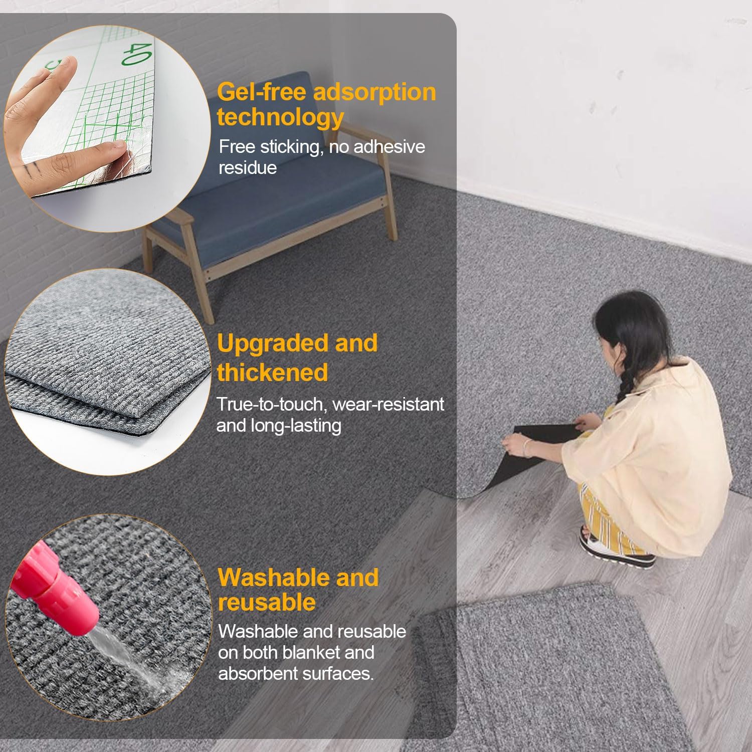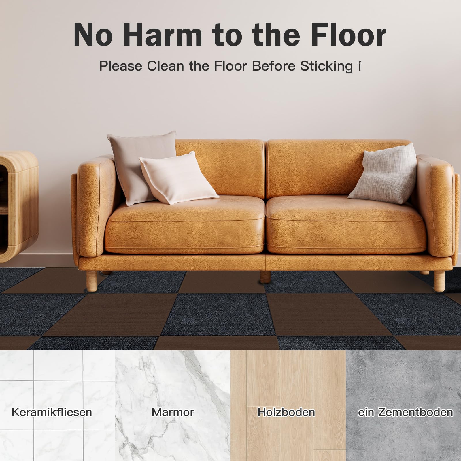 Alter, diese Teppichfliesen sind ja der Hammer! 12 Stück im Set, je 30x30cm - damit deckst du bis zu 3m² ab! Aus hochwertigem Polyester - rutschfest, faltresistent und mega langlebig! Selbstklebend - einfach Schutzfolie abziehen und auf sauberen Boden drücken! Kein Kleber kaufen, keine Rückstände! Perfekt für Mieter oder wenn du mal was ändern willst! Mit ner Schere zuschneidbar - passt in jede Ecke! Ob im Schlafzimmer, Wohnzimmer, Büro oder sogar im Wohnwagen - hier machst du jeden Boden gemütlich! Einfach mit Staubsauger reinigen oder mit nem feuchten Tuch abwischen! Mach deine vier Wände noch wohnlicher!