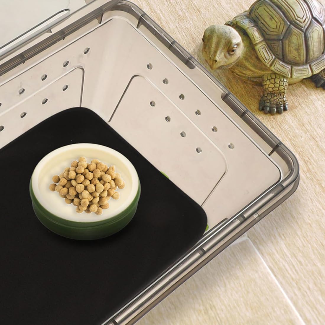 Perfekte Schale für deine Reptilien! Diese grüne Wasserschale im Stein-Design ist ideal für Schildkröten, Geckos, Schlangen und andere kleine Reptilien.\n\nMit 18x14x0,5cm die ideale Größe für Futter und Wasser. Aus sicherem Harzmaterial - langlebig und unzerbrechlich. Das natürliche Stein-Design fügt sich perfekt ins Terrarium ein.\n\nSuper easy zu reinigen: einfach mit Wasser abspülen oder mit nem Lappen abwischen. Keine scharfen Kanten - absolut sicher für deine Tiere!\n\nVielseitig verwendbar als Futter- oder Trinkschale. Mach dein Terrarium noch schöner und praktischer! Deine Reptilien werden's lieben! 🐢