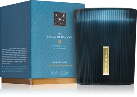 Verwandle dein Zuhause in eine orientalische Wellness-Oase! Diese RITUALS Duftkerze mit dem erfrischenden Duft von Eukalyptus und Rosmarin bringt die Atmosphäre eines echten Hammam in deine vier Wände. Die 290g Kerze brennt bis zu 50 Stunden und verbreitet einen belebenden, klärenden Duft, der neue Energie schenkt. Perfekt nach einem stressigen Tag oder um morgens in Schwung zu kommen. Beim ersten Anzünden am besten 4-5 Stunden brennen lassen, dann brennt sie immer schön gleichmäßig ab. Das edle Glasgefäß kannst du später noch als Vase oder Stiftehalter weiterverwenden. Für alle, die sich etwas Luxus gönnen wollen und eine Duftkerze suchen, die nicht nur gut riecht, sondern auch richtig was hermacht. Einfach anzünden und den Alltag hinter sich lassen!