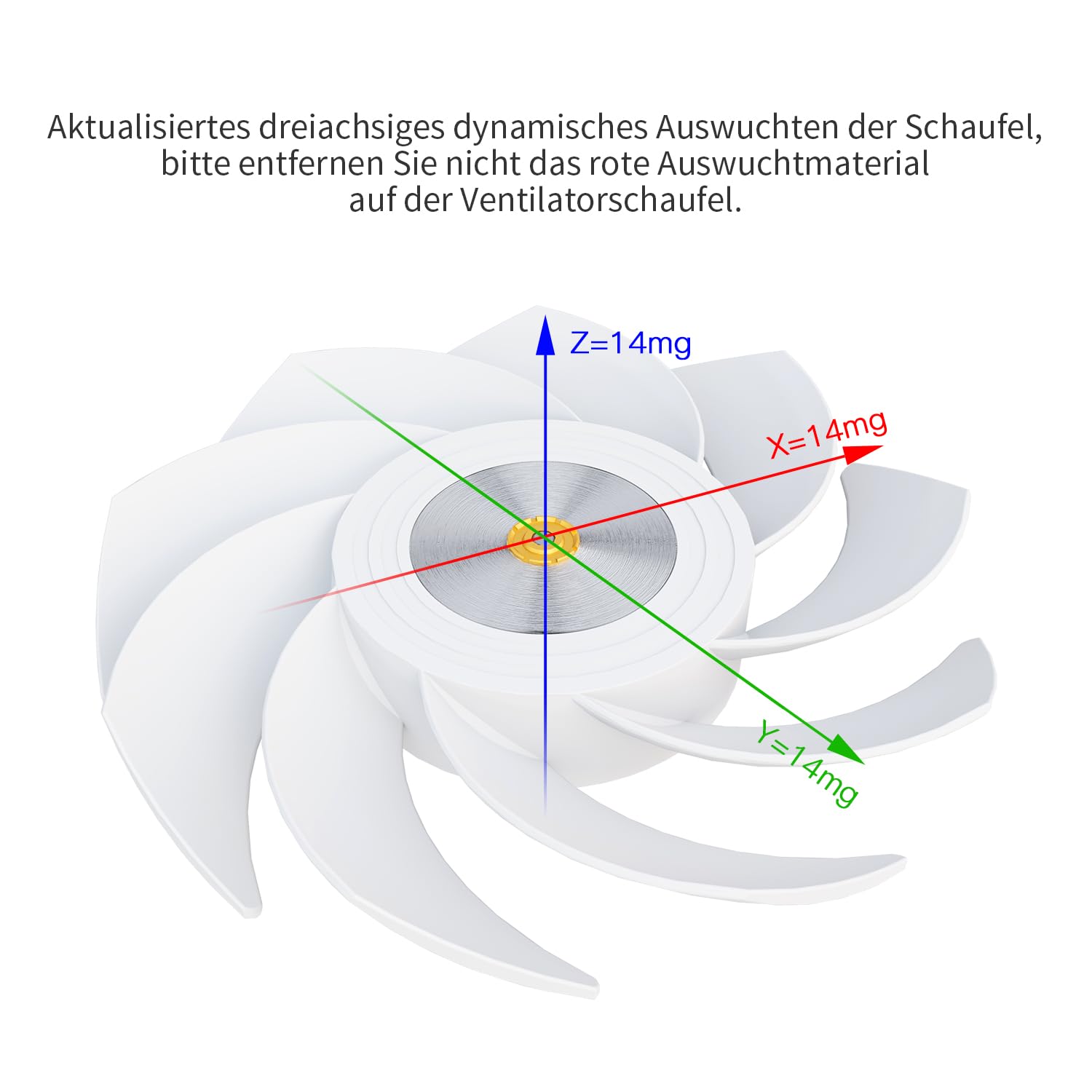Das Besondere: Der Lüfter verwendet einen speziellen Ausgleichsprozess für maximale Stabilität - kein Wackeln, kein Ruckeln, nur butterweicher Lauf! Das dreieckige Rahmendesign erhöht die Windfläche und die strukturelle Stärke.