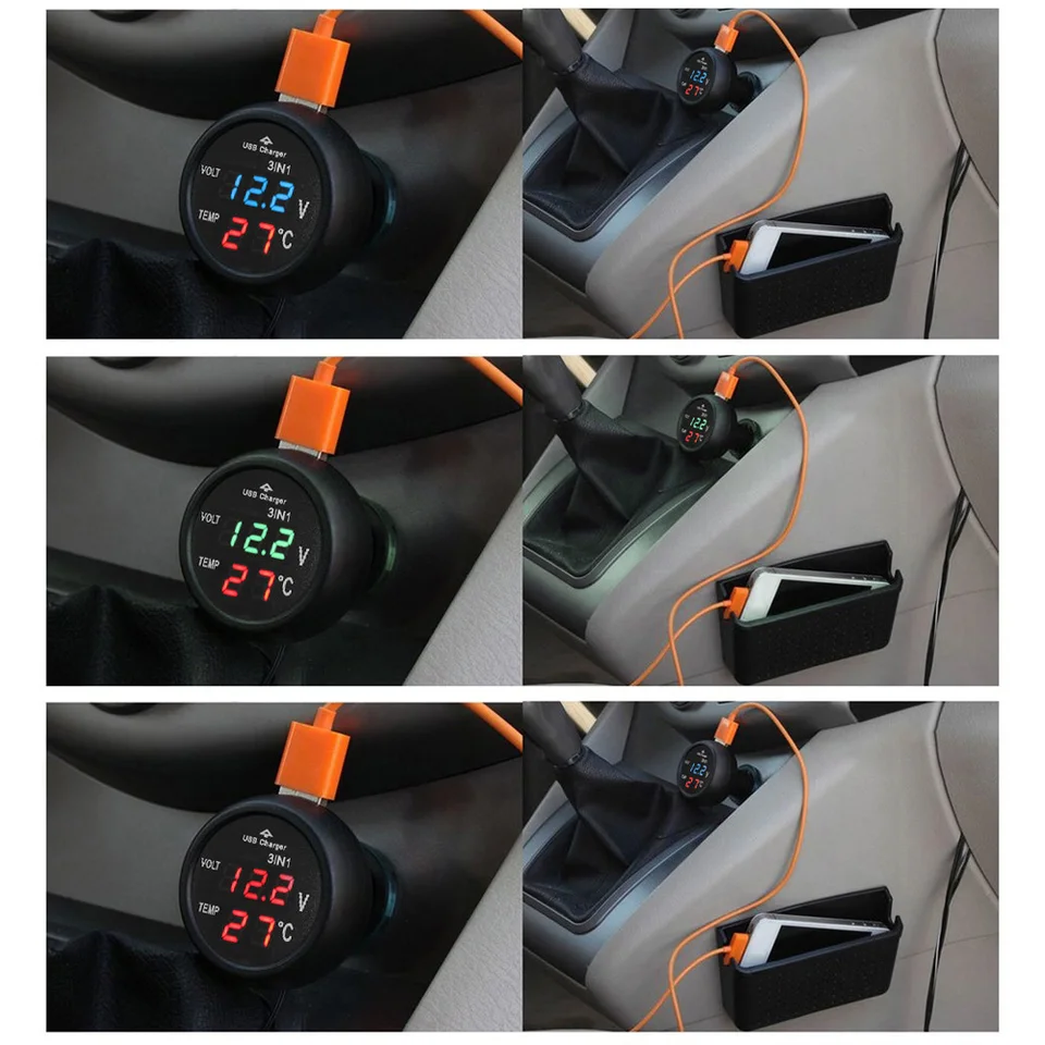 Dieses 3-in-1-Teil fürs Auto ist echt clever! Es zeigt dir live an, wie's um deine Batterie steht und wie warm oder kalt es im Auto ist. Einfach in den Zigarettenanzünder stecken - sofort siehst du auf dem klaren LED-Display Spannung und Temperatur. Super praktisch, um Probleme mit der Batterie früh zu erkennen. Und als Bonus kannst du damit auch noch dein Handy über USB aufladen. Das schwarze Gehäuse aus ABS ist unauffällig und robust. Keine komplizierte Installation, kein Kabelsalat. Für 12V und 24V Fahrzeuge geeignet. Ob auf langen Fahrten oder im Stadtverkehr - mit diesem kleinen Helfer bist du immer im Bilde über den Zustand deines Autos. Ein Must-Have für alle, die auf Nummer sicher gehen wollen!
