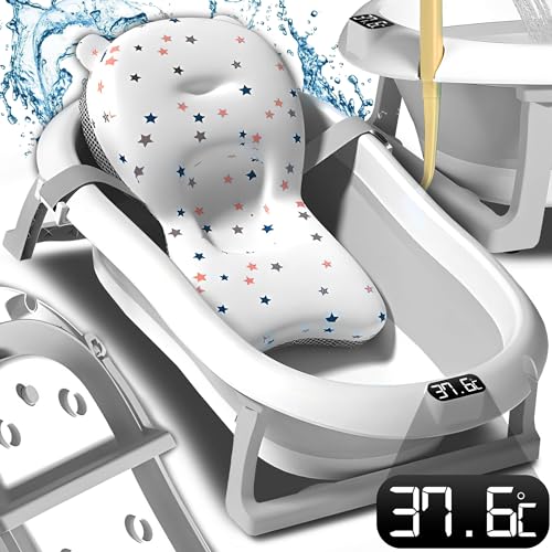 Faltbare Baby Badewanne Mit Thermometer - Rutschfeste Wanne Für Neugeborene