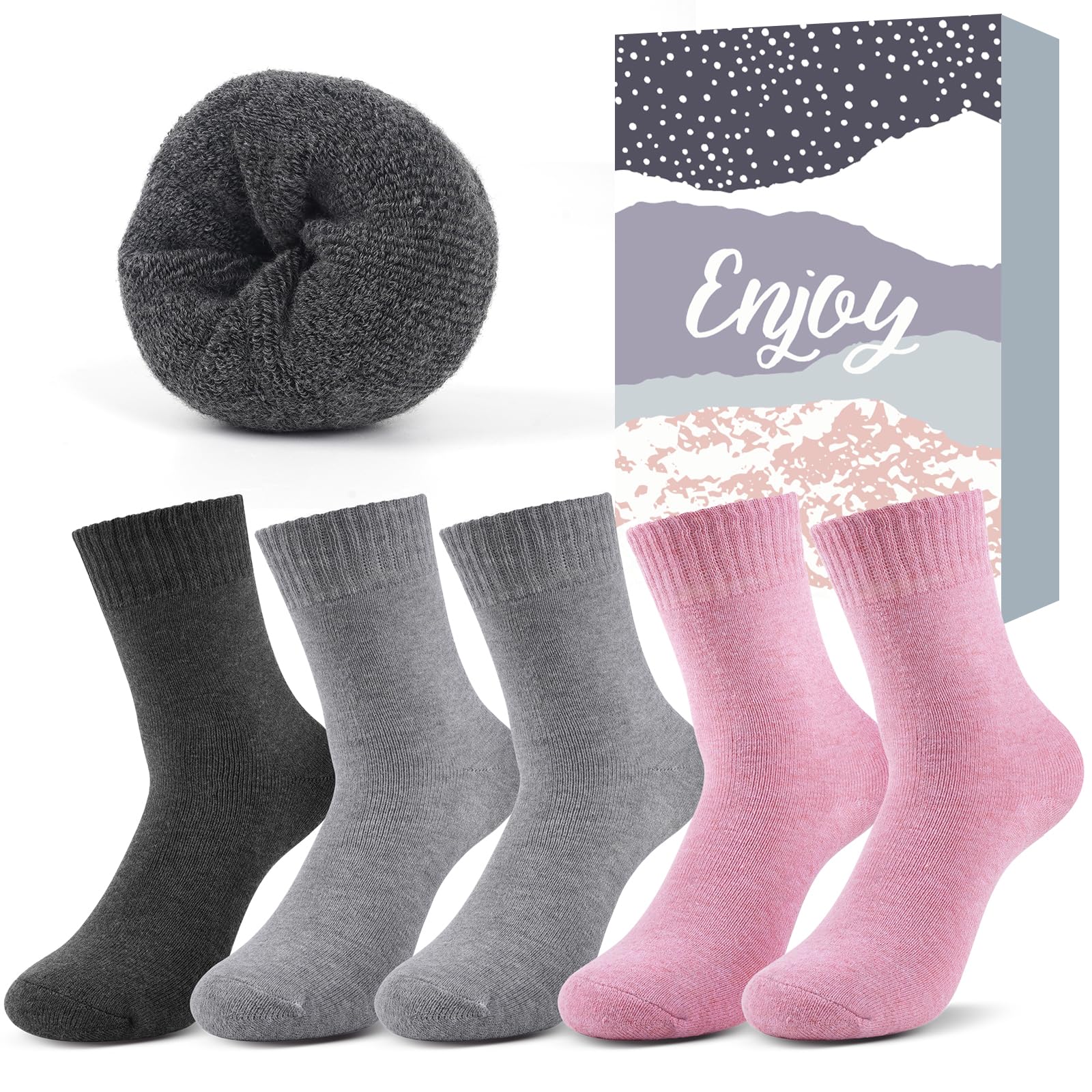 Bereite deine Füße auf den Winter vor mit diesem praktischen 5-Paar Socken-Set von Joligiao! Aus 60% Baumwolle und 40% Polyester gefertigt, sorgen diese Thermosocken für optimale Wärme und Feuchtigkeitsregulierung. Extra lang und dick gestrickt, halten sie deine Füße auch an den kältesten Tagen kuschelig warm. Der elastische Bund sitzt perfekt ohne zu drücken und rutscht nicht. Passt für Damenschuhgrößen 35-43. Perfekt für den Alltag, beim Wandern, Camping oder einfach nur zum gemütlichen Fernsehabend auf der Couch. Die atmungsaktiven Eigenschaften sorgen dafür, dass deine Füße den ganzen Tag über trocken und komfortabel bleiben. Ein tolles Geschenk für Weihnachten, Geburtstage oder einfach so!