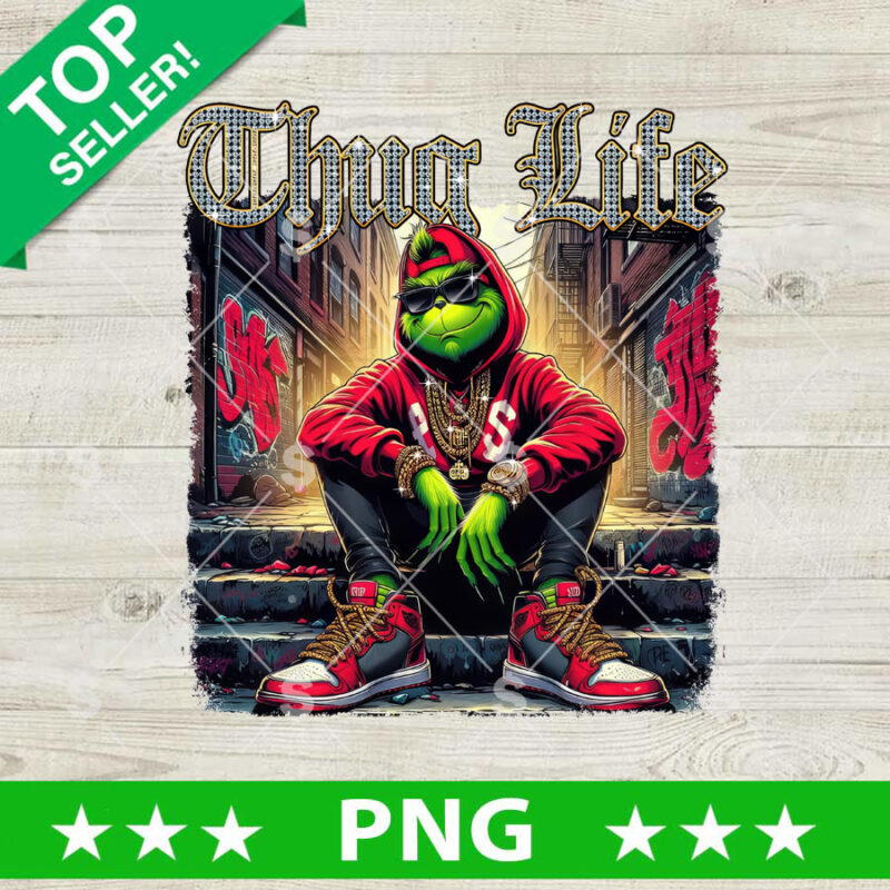Cooles Weihnachts-Shirt mit Attitude! Dieses Thug Life Grinch T-Shirt mit Cannabis-Motiv sorgt für Lacher auf jeder Weihnachtsfeier. Aus 100% Baumwolle - super bequem zu tragen.
