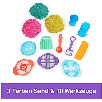 Oh Mann, dieses Sand-Set von Tigvio ist der absolute Hit für kleine Baustellen-Fans! Der kinetische Sand ist magisch - er lässt sich super formen, klebt nicht an den Händen und trocknet nicht aus. Im Set sind 1000g Sand in verschiedenen Farben plus 8 coole Baustellenfahrzeuge enthalten. Da gibt's Bagger, Bulldozer, Walze und noch mehr - einige davon haben bewegliche Teile! Dazu kommen 6 Burgformen, Verkehrsschilder, Bäume und Werkzeuge. Alles verpackt in einer praktischen Aufbewahrungsbox, die gleichzeitig als Sandkasten dient. Die Kids können damit stundenlang spielen, Burgen bauen und Baustellen-Szenen nachspielen. Perfekt für Kinder ab 3 Jahren - fördert die Fantasie und motorischen Fähigkeiten. Ob drinnen oder im Garten, der Spaß ist garantiert. Und das Beste: Der Sand ist leicht zu reinigen und lässt sich einfach wieder in die Box räumen. Ein super Geschenk für Geburtstage, Weihnachten oder einfach so. Wenn deine Kinder Baustellen lieben, wird dieses Set sie absolut begeistern!