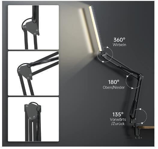 • Lindby Ailina LED Tischlampe - Schwarz Mit Klemmfuß & Dimmfunktion