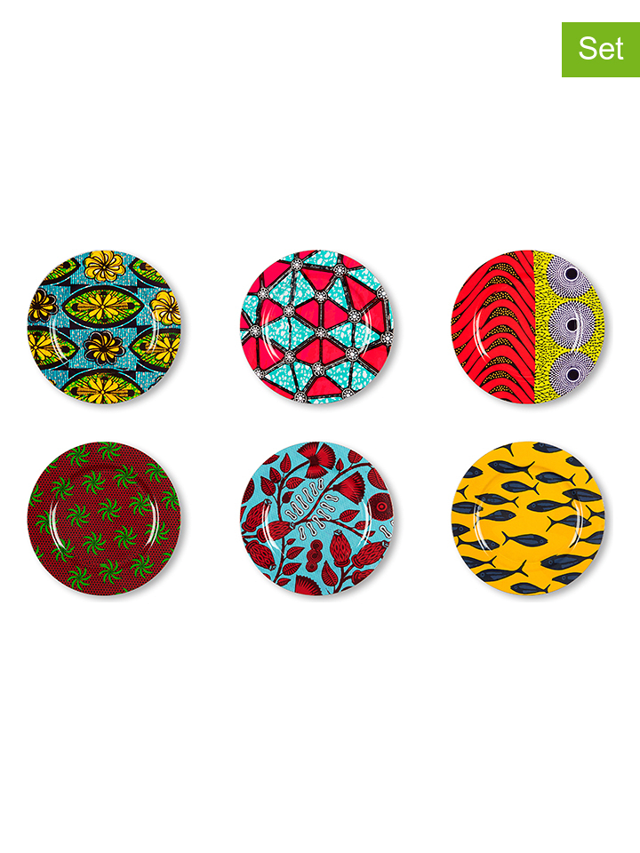 Bring Farbe auf deinen Tisch! Dieses wunderschöne 6er-Set Platzteller im Aquarell-Design verwandelt jede Tafel in ein blütenreines Kunstwerk. \\n\\nJeder Teller zeigt ein einzigartiges Blumenmotiv in lebendigen, leuchtenden Farben - wie gemalt auf einer weißen Leinwand. Die glatte Oberfläche ist nicht nur hübsch anzusehen, sondern auch praktisch in der Handhabung. \\n\\nProduktdetails: \\n- Durchmesser: 33 cm \\n- Höhe: 2 cm \\n- Material: PP-Kunststoff \\n- 6 verschiedene Designs im Set \\n- Leicht und bruchsicher \\n\\nPflegeleicht: \\n- Einfach mit feuchtem Tuch abwischen \\n- Nicht spülmaschinengeeignet \\n- Nicht mikrowellentauglich \\n\\nPerfekt für: \\n- Festliche Tafeln \\n- Gartenpartys \\n- Buffets \\n- Besondere Anlässe \\n- Täglichen Gebrauch \\n\\nVerleihe deinem Zuhause einen Hauch von Eleganz und Fröhlichkeit - mit Tellern, die immer ein Lächeln ins Gesicht zaubern!