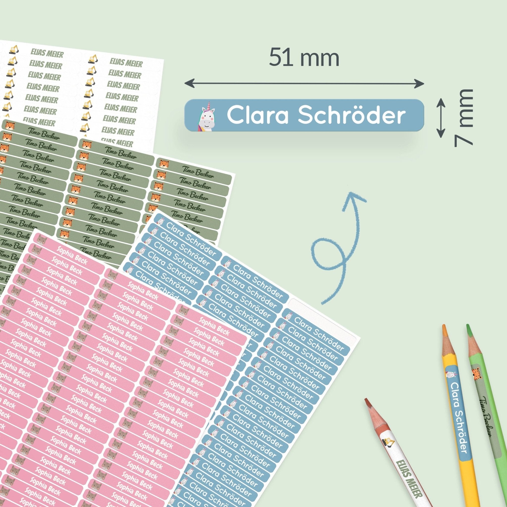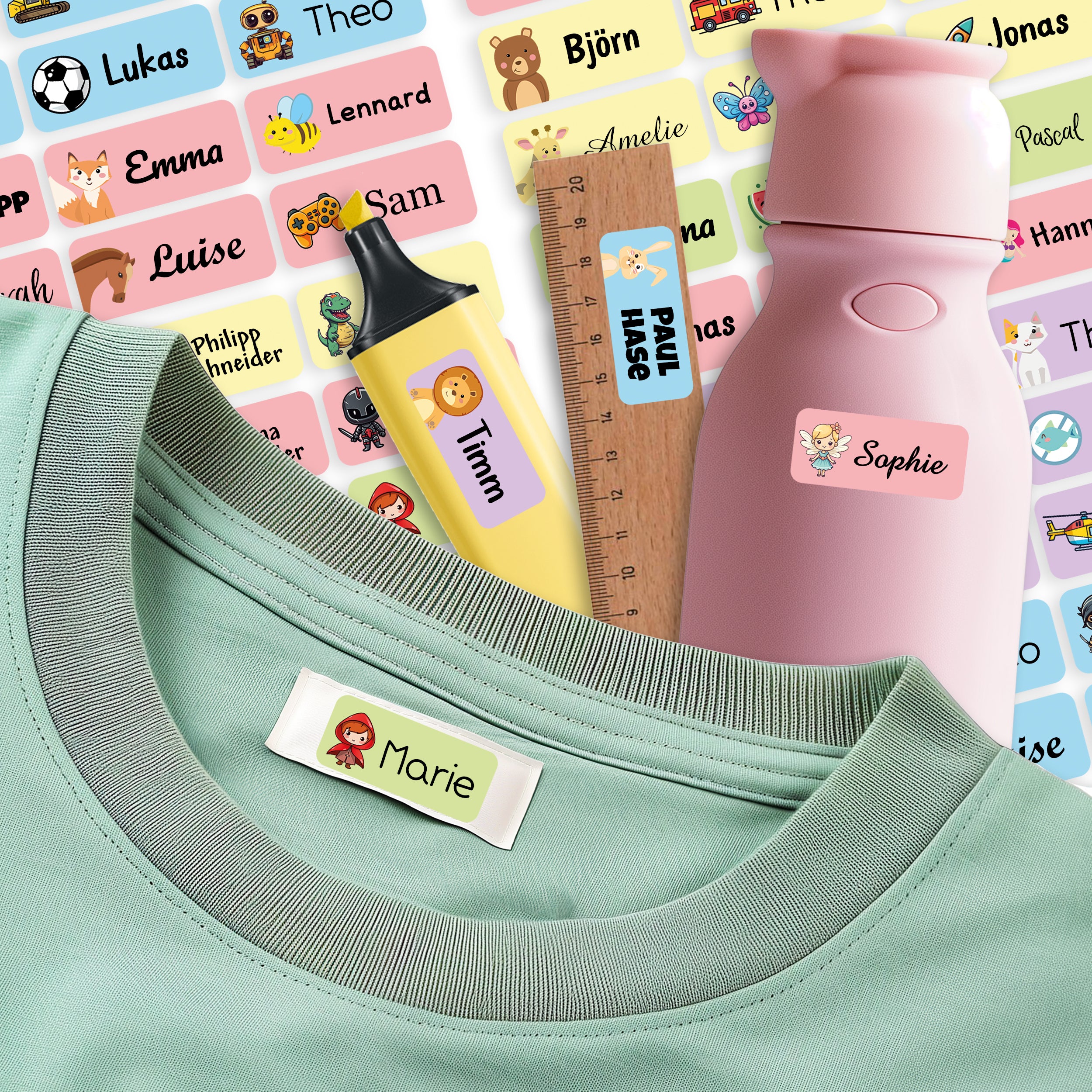 Einfach aufkleben und fertig! Auf Textilien nur auf die Waschetiketten kleben, bei Stiften und Flaschen auf jede glatte Oberfläche.