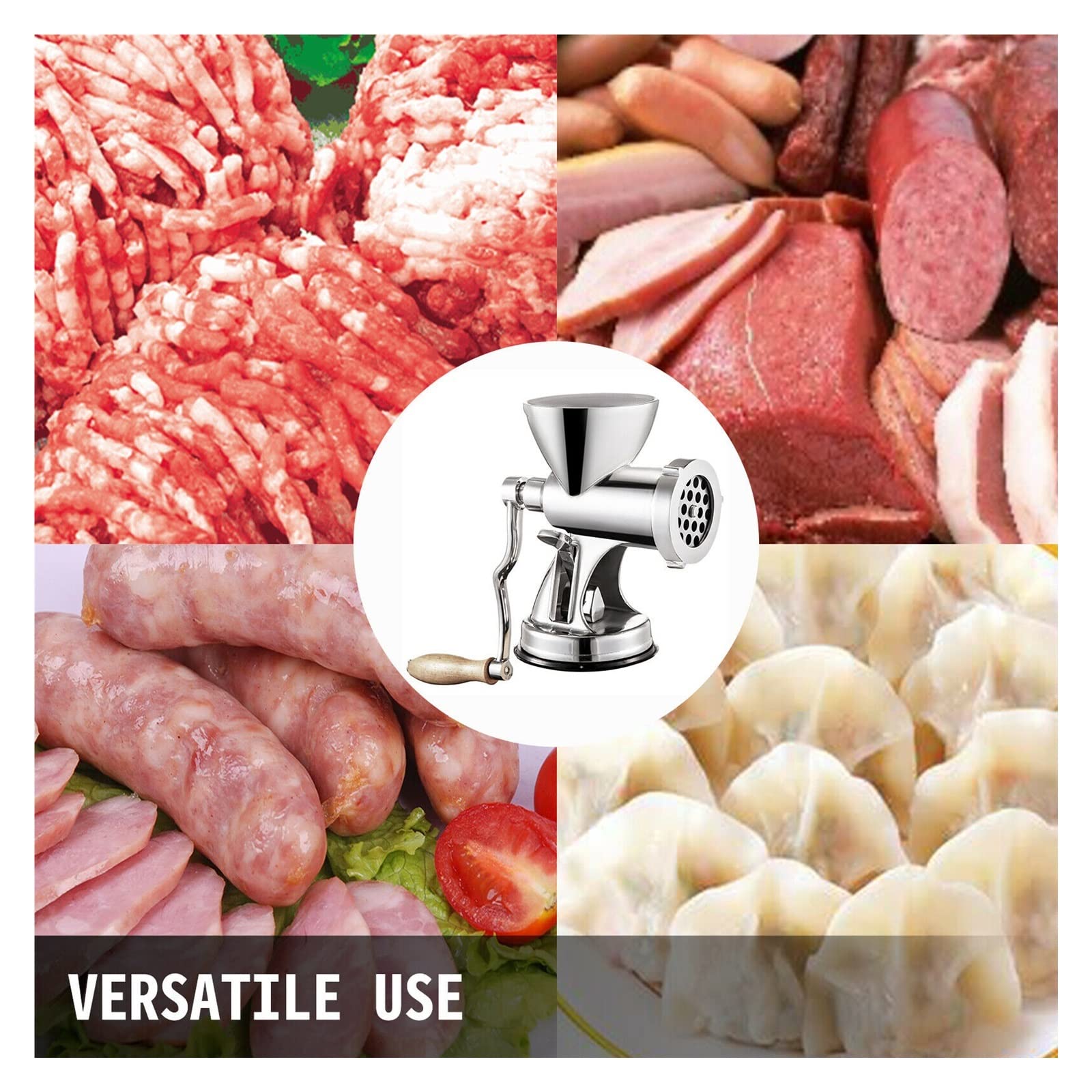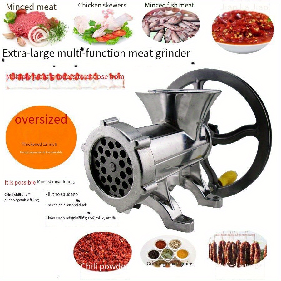 Der Alleskönner für deine Küche! Dieser robuste Fleischwolf von Tktouci macht das Zerkleinern von Fleisch zum Kinderspiel. Aus hochwertigem Edelstahl und ABS gefertigt, wiegt er 950g und hat Maße von 24x20 cm. Mit dabei: 1 Wursthersteller, 3 verschiedene Wurstrohre, 1 Fleischplatte und 1 Cutter. Perfekt für die Herstellung von Würsten, Burgerpatties, Fleischbällchen oder Füllungen. Die ergonomische Form liegt gut in der Hand und reduziert den Handgelenksdruck. Das stabile Metallgehäuse garantiert verformungsfreien Dauerbetrieb. Mit den rutschfesten Tischklemmen und Silikonfüßen steht der Wolf sicher auf jeder Arbeitsfläche. Einfach per Handkurbel bedienen - ohne großen Kraftaufwand. Ideal für passionierte Hobbyköche, die gerne selbst Wurst herstellen oder Fleisch verarbeiten. Mach deine Küche zur Metzgerei!