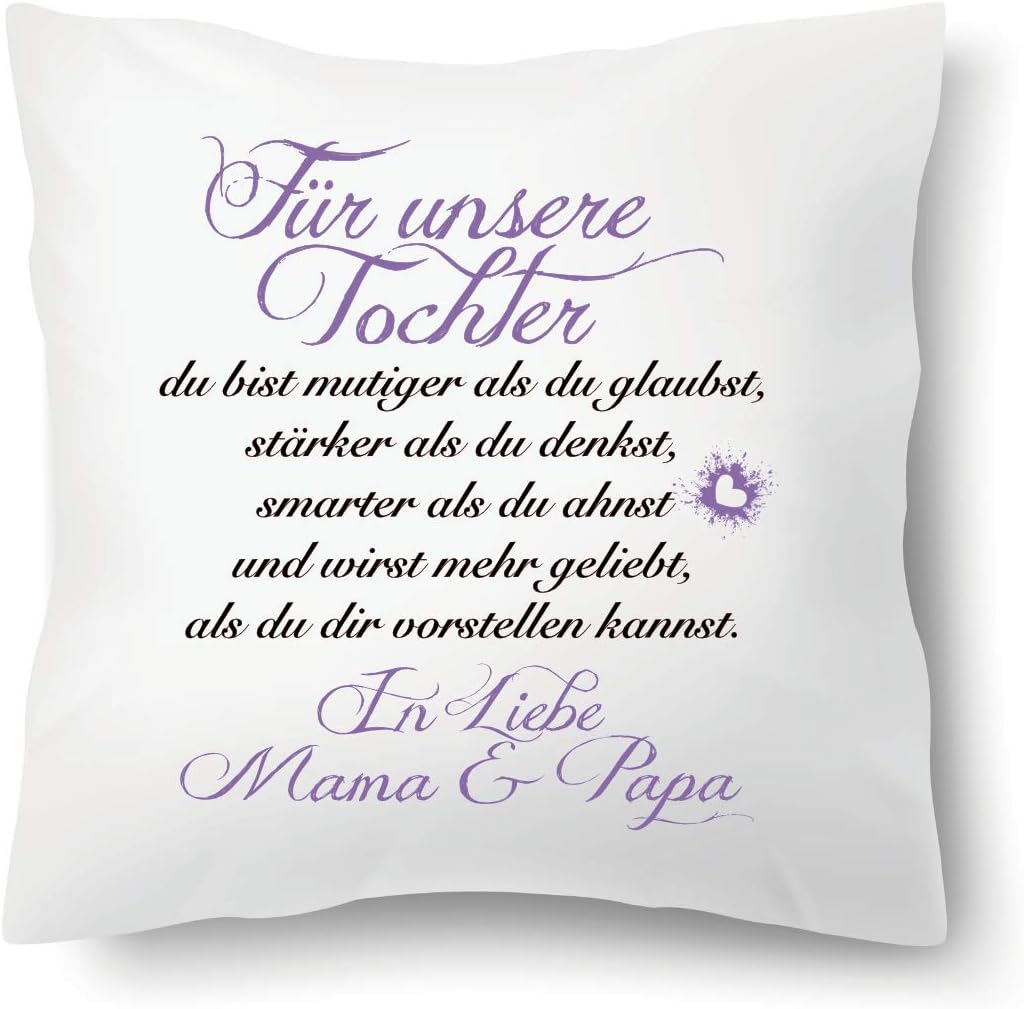 Dieses wunderschöne Herzkissen ist die perfekte Geschenkidee von Mama an die Tochter! Mit einem persönlichen Spruch wird es zu einem ganz besonderen Erinnerungsstück. Das Kissen besteht aus 100% Polyester und hat die ideale Kuschelgröße von 40x44 cm. Es ist bis 40°C waschbar (einfach auf links drehen) und verfügt über einen praktischen Reißverschluss - die Füllung ist natürlich inklusive! Perfekt als Dekokissen fürs Sofa, als kuscheliges Kopfkissen oder einfach als liebevolle Überraschung zum Geburtstag, Weihnachten oder einfach mal zwischendurch. Das Motiv wird in brillanten Farben gedruckt und macht dieses Kissen zum absoluten Lieblingsstück!