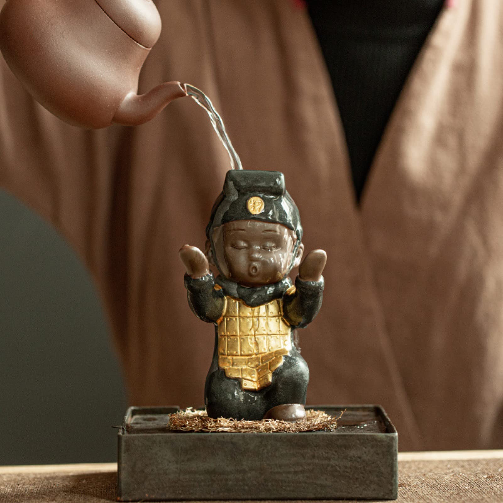 Die Figur ist nicht nur hübsch anzusehen, sondern hat auch eine praktische Funktion: Du kannst sie mit Wasser füllen und für Tee-Zeremonien verwenden. Besonders als Geschenk für Tee-Fans oder als besonderes Deko-Element im Wohnzimmer. Das lila Ton-Material gibt ihr einen natürlichen, erdigen Charakter. Stell sie auf den Couchtisch, ins Regal oder nutz sie wirklich für deine Tee-Rituale - sie ist auf jeden Fall ein Eyecatcher!
