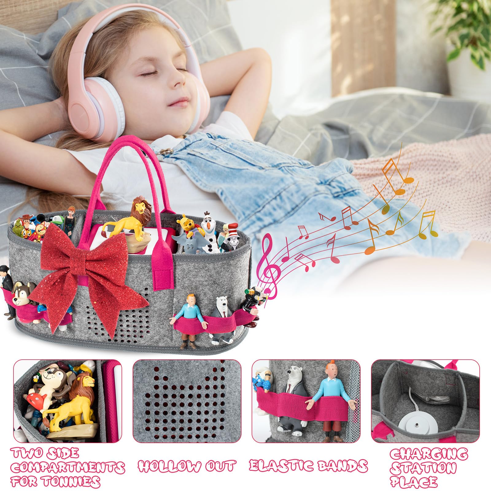 Endlich Ordnung für deine Toniebox und all die süßen Figuren! Diese praktische Tragetasche aus weichem Filz ist der perfekte Begleiter für unterwegs. Mit 26 x 13,7 x 14,4 cm hat sie genug Platz für die Toniebox und mehrere Figuren. Das coole Design hat 6 elastische Bänder, wo deine Lieblingsfiguren sicher festgeschnallt werden. Und das Beste: An der Seite ist eine Aussparung, sodass du die Toniebox gar nicht erst rausholen musst, um Musik zu hören! In der Mitte gibt's eine Trennwand, damit alles schön ordentlich bleibt. Der dicke Filz schützt vor Kratzern und der weiche Tragegurt macht das Transportieren super bequem. Perfekt für:• Unterwegs im Auto oder Zug• Urlaub und Reisen• Aufbewahrung zu Hause• Als Geschenk für Toniebox-FansEinfach zusammenklappen und verstauen - so praktisch war Aufbewahrung noch nie! Die Tasche passt perfekt zum Toniebox Starter-Set und sieht in Rosa total niedlich aus. Nie wieder verlorene Figuren oder Kratzer auf der Toniebox!